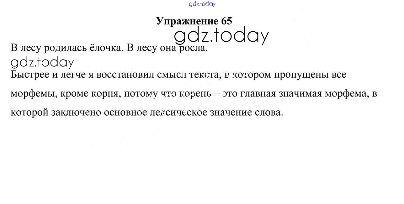 На страницах сайта gdz.today вы найдете учебный и вспомогательный материал, направленный на улучшения знаний школьной программы. ГДЗ - онлайн мир знаний Решение к упражнениям 65 Учебнику по Русскому языку для 6 класса Мурина, Литвинко Национальный институт образования 2020