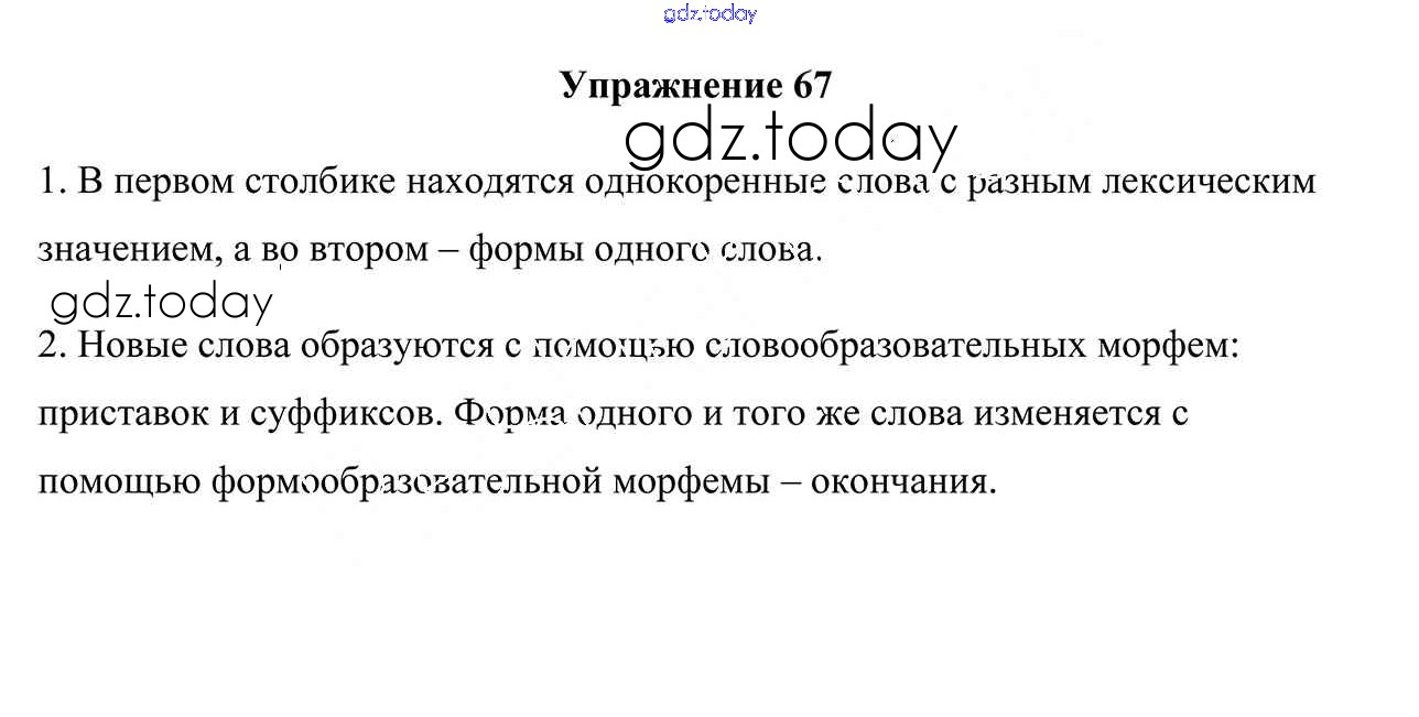 На страницах сайта gdz.today вы найдете учебный и вспомогательный материал, направленный на улучшения знаний школьной программы. ГДЗ - онлайн мир знаний Решение к упражнениям 67 Учебнику по Русскому языку для 6 класса Мурина, Литвинко Национальный институт образования 2020