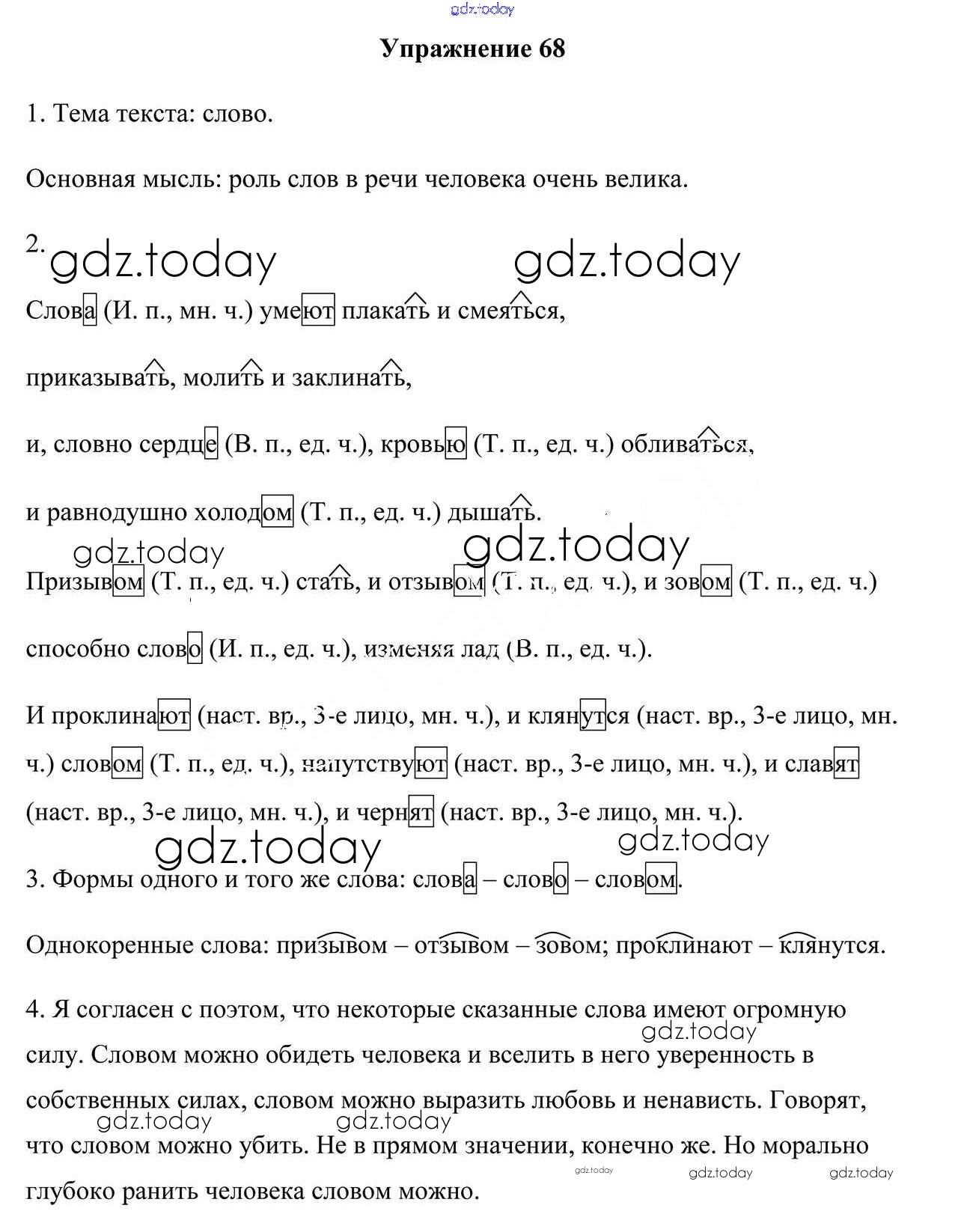 На страницах сайта gdz.today вы найдете учебный и вспомогательный материал, направленный на улучшения знаний школьной программы. ГДЗ - онлайн мир знаний Решение к упражнениям 68 Учебнику по Русскому языку для 6 класса Мурина, Литвинко Национальный институт образования 2020