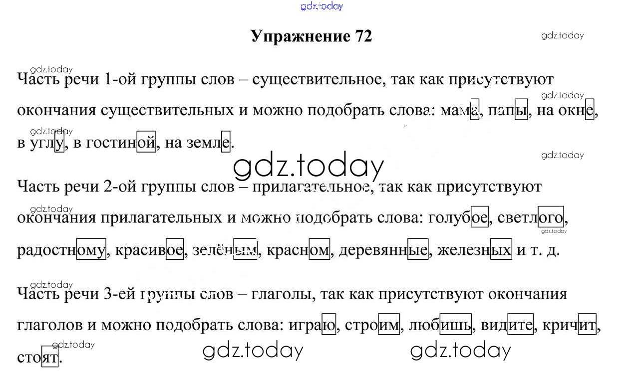 На страницах сайта gdz.today вы найдете учебный и вспомогательный материал, направленный на улучшения знаний школьной программы. ГДЗ - онлайн мир знаний Решение к упражнениям 72 Учебнику по Русскому языку для 6 класса Мурина, Литвинко Национальный институт образования 2020