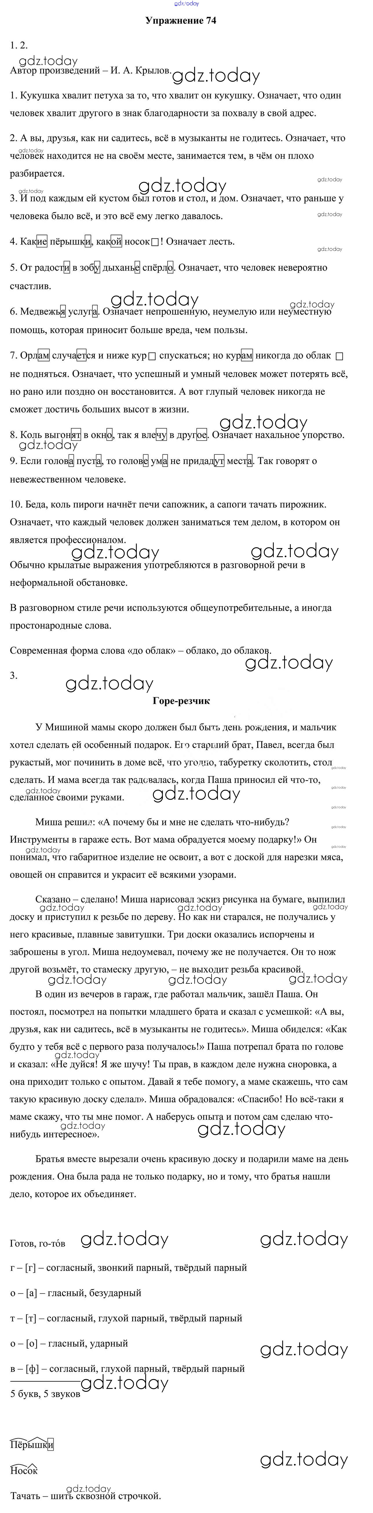 На страницах сайта gdz.today вы найдете учебный и вспомогательный материал, направленный на улучшения знаний школьной программы. ГДЗ - онлайн мир знаний Решение к упражнениям 74 Учебнику по Русскому языку для 6 класса Мурина, Литвинко Национальный институт образования 2020