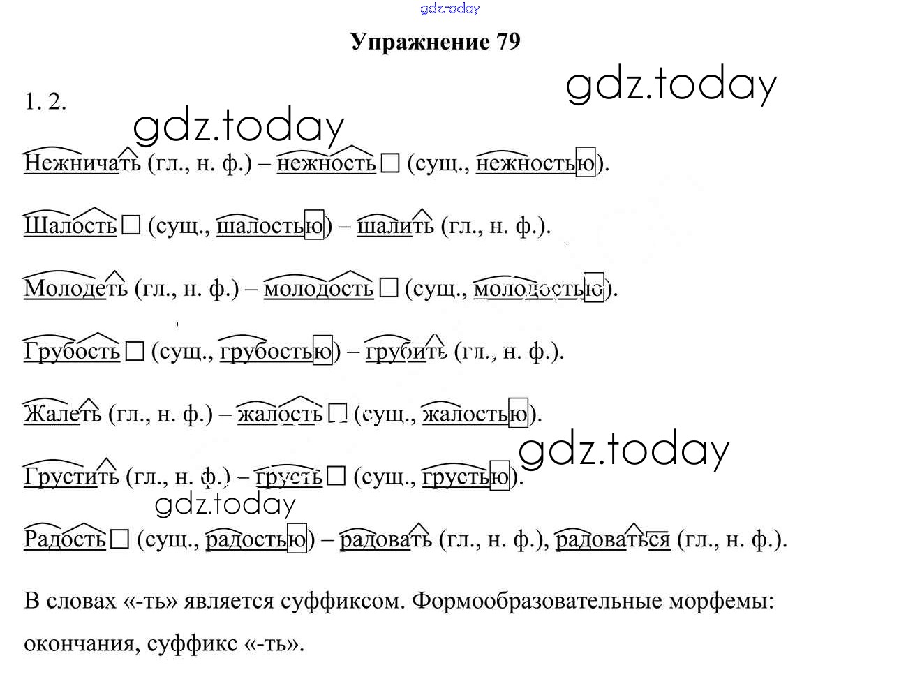 На страницах сайта gdz.today вы найдете учебный и вспомогательный материал, направленный на улучшения знаний школьной программы. ГДЗ - онлайн мир знаний Решение к упражнениям 79 Учебнику по Русскому языку для 6 класса Мурина, Литвинко Национальный институт образования 2020