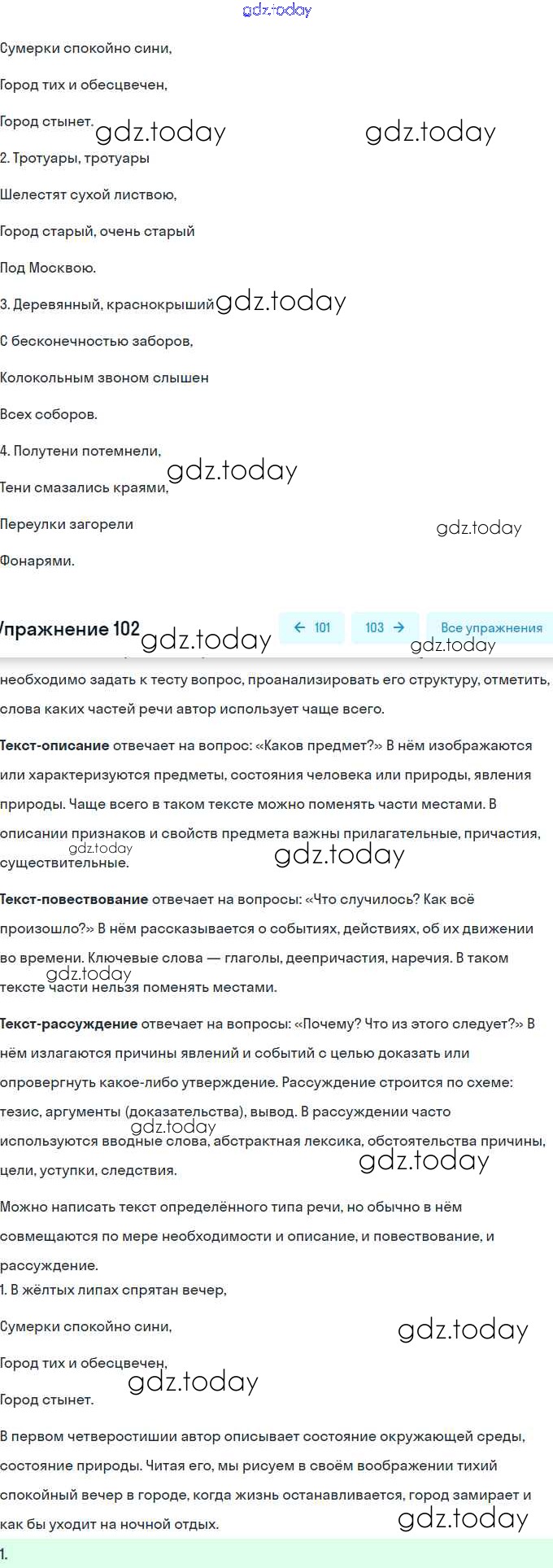 На страницах сайта gdz.today вы найдете учебный и вспомогательный материал, направленный на улучшения знаний школьной программы. ГДЗ - онлайн мир знаний Решение. Упражнения 102 Рабочей тетради по Русскому языку для 6 класса Гостева Экзамен УМК 2015
