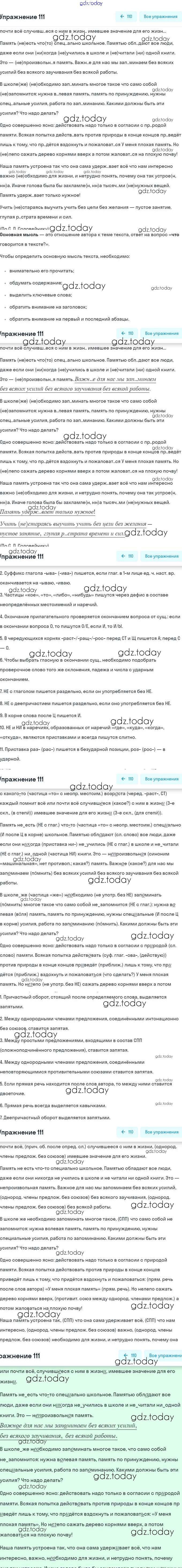 На страницах сайта gdz.today вы найдете учебный и вспомогательный материал, направленный на улучшения знаний школьной программы. ГДЗ - онлайн мир знаний Решение. Упражнения 111 Рабочей тетради по Русскому языку для 6 класса Гостева Экзамен УМК 2015