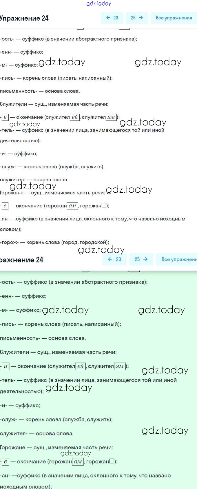 На страницах сайта gdz.today вы найдете учебный и вспомогательный материал, направленный на улучшения знаний школьной программы. ГДЗ - онлайн мир знаний Решение. Упражнения 24 Рабочей тетради по Русскому языку для 6 класса Гостева Экзамен УМК 2015