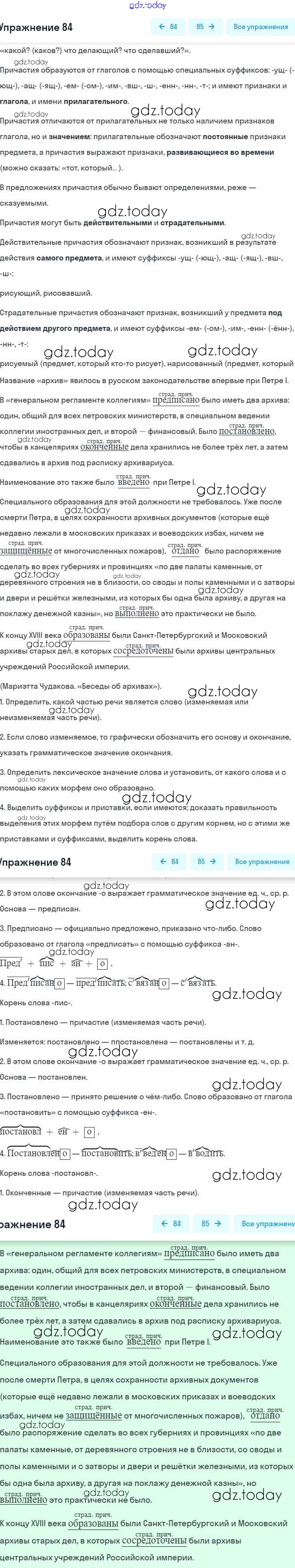 На страницах сайта gdz.today вы найдете учебный и вспомогательный материал, направленный на улучшения знаний школьной программы. ГДЗ - онлайн мир знаний Решение. Упражнения 84 Рабочей тетради по Русскому языку для 6 класса Гостева Экзамен УМК 2015