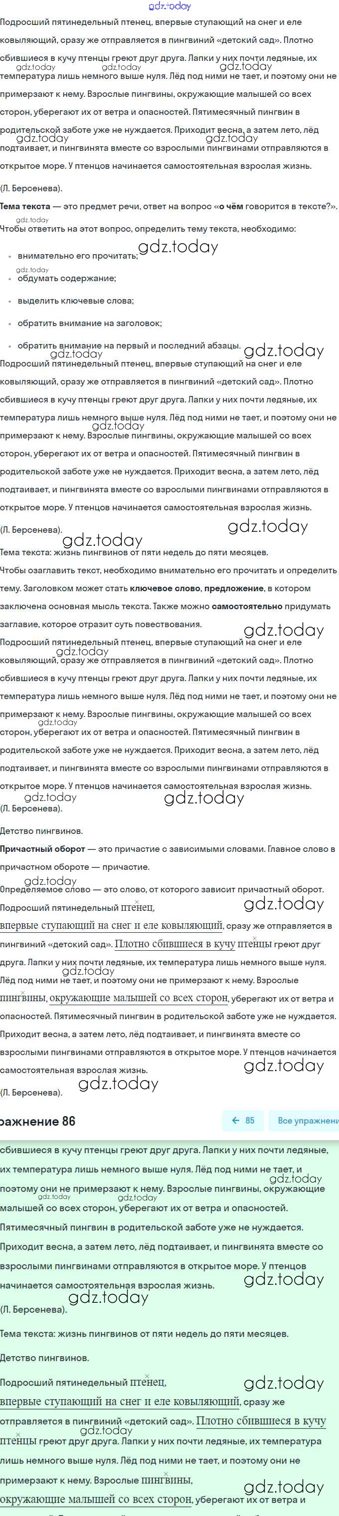 Ответы к Решение. Упражнения 86 Рабочей тетради по Русскому языку для 6 класса Гостева Экзамен УМК 2015