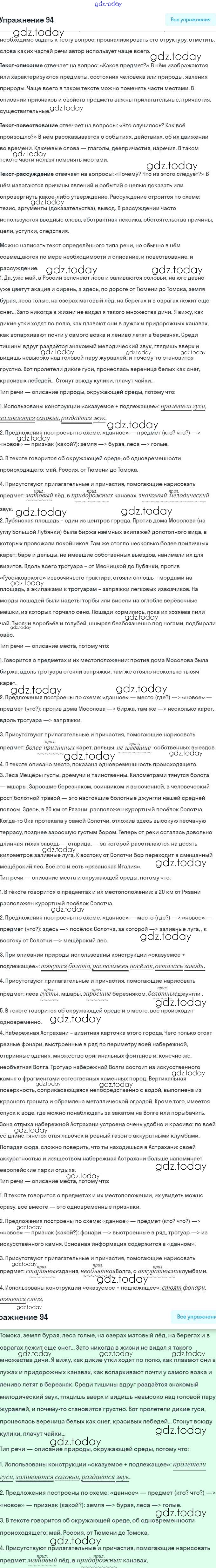 Ответы к Решение. Упражнения 94 Рабочей тетради по Русскому языку для 6 класса Гостева Экзамен УМК 2015