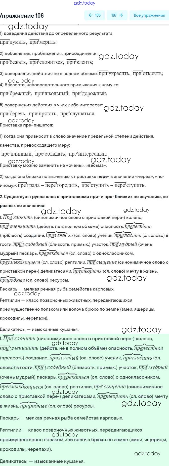 Ответы к Решение. Упражнения 106 Рабочей тетради по Русскому языку для 6 класса Янченко, Латфуллина Просвещение 2022