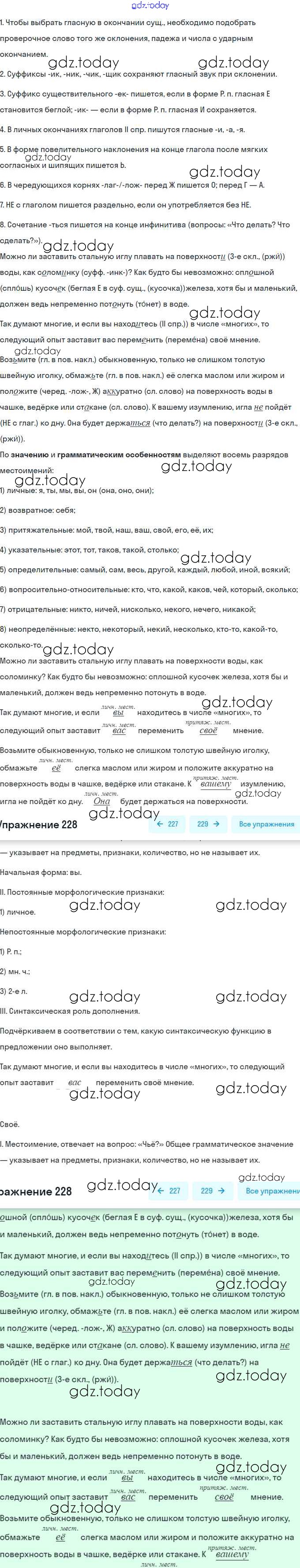 На страницах сайта gdz.today вы найдете учебный и вспомогательный материал, направленный на улучшения знаний школьной программы. ГДЗ - онлайн мир знаний Решение. Упражнения 228 Рабочей тетради по Русскому языку для 6 класса Янченко, Латфуллина Просвещение 2022