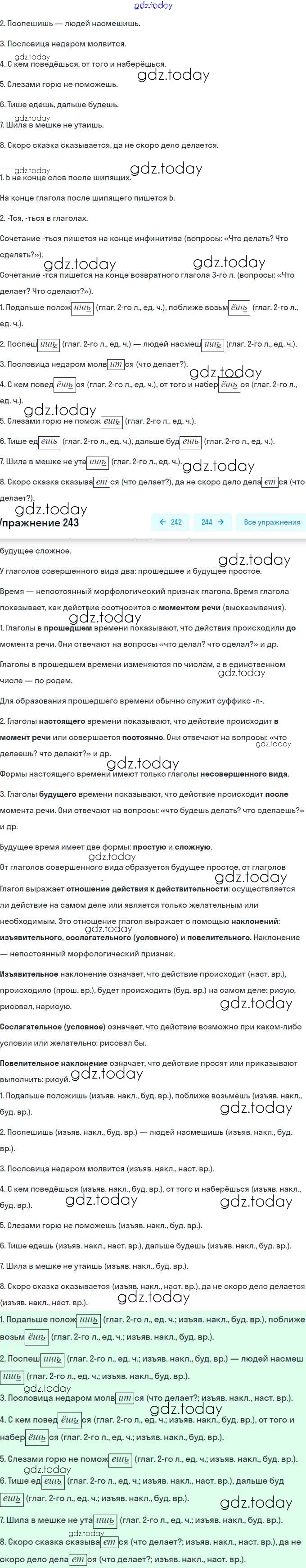 На страницах сайта gdz.today вы найдете учебный и вспомогательный материал, направленный на улучшения знаний школьной программы. ГДЗ - онлайн мир знаний Решение. Упражнения 243 Рабочей тетради по Русскому языку для 6 класса Янченко, Латфуллина Просвещение 2022