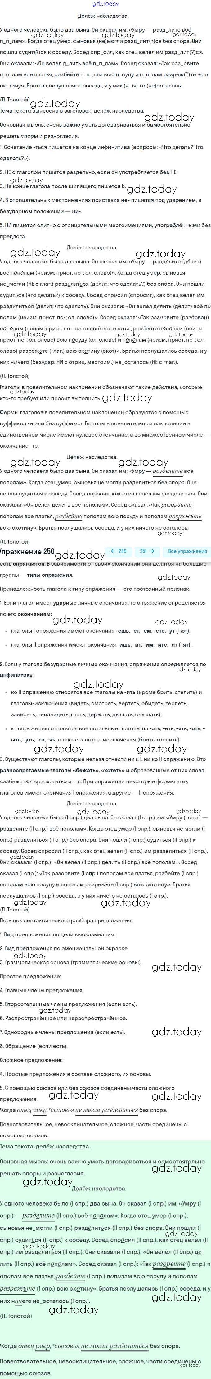 На страницах сайта gdz.today вы найдете учебный и вспомогательный материал, направленный на улучшения знаний школьной программы. ГДЗ - онлайн мир знаний Решение. Упражнения 250 Рабочей тетради по Русскому языку для 6 класса Янченко, Латфуллина Просвещение 2022