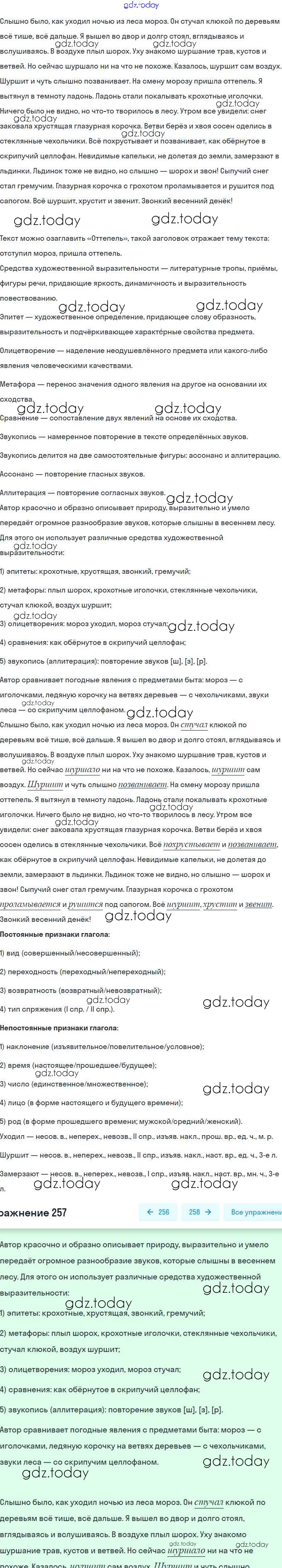 На страницах сайта gdz.today вы найдете учебный и вспомогательный материал, направленный на улучшения знаний школьной программы. ГДЗ - онлайн мир знаний Решение. Упражнения 257 Рабочей тетради по Русскому языку для 6 класса Янченко, Латфуллина Просвещение 2022
