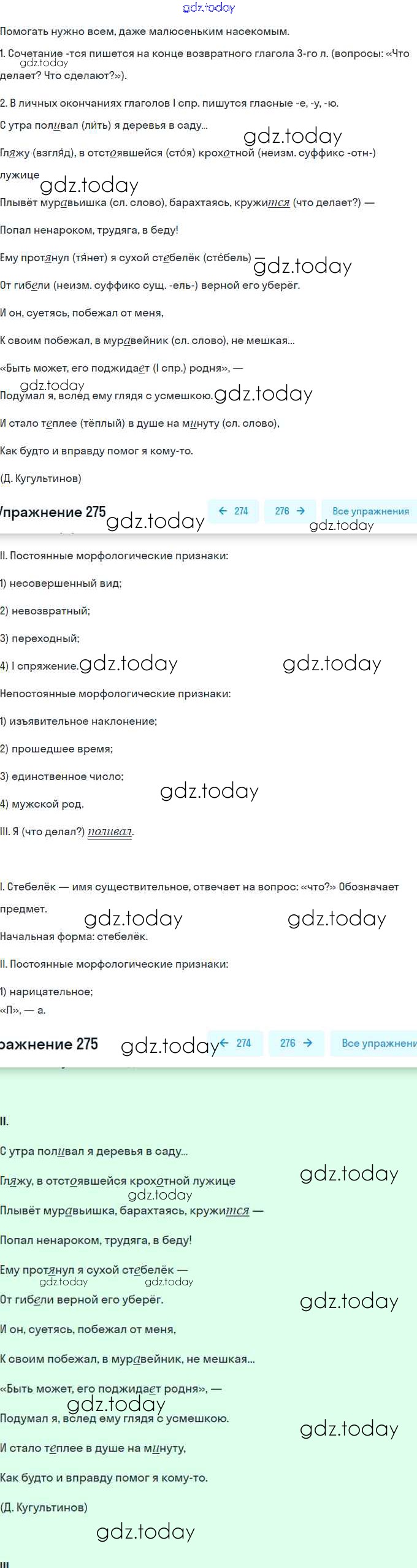 Ответы к Решение. Упражнения 275 Рабочей тетради по Русскому языку для 6 класса Янченко, Латфуллина Просвещение 2022