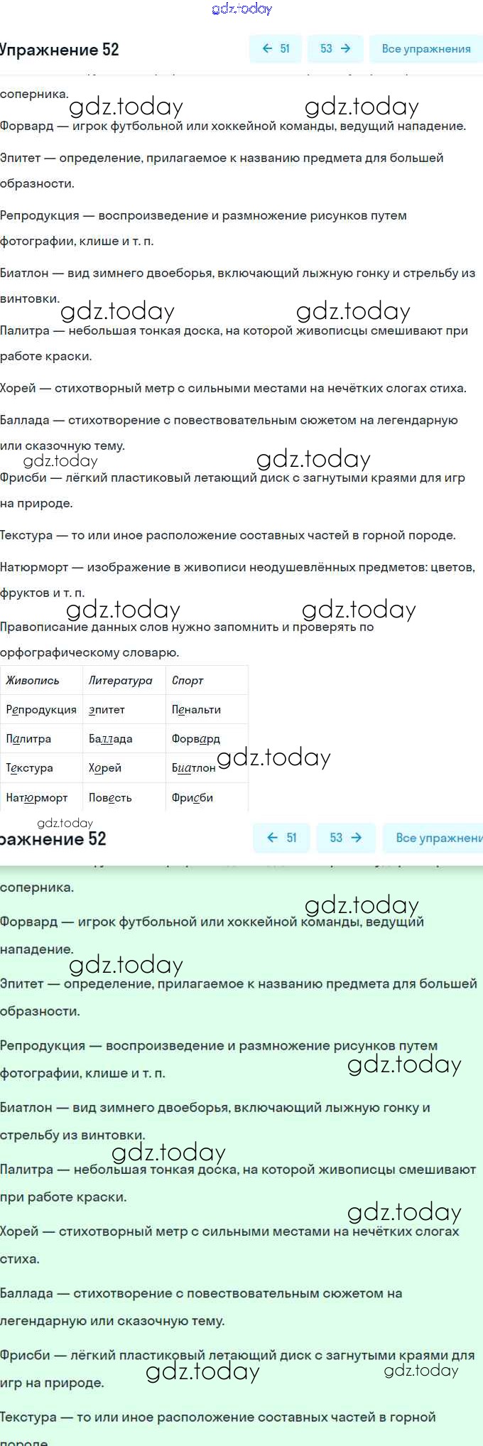 На страницах сайта gdz.today вы найдете учебный и вспомогательный материал, направленный на улучшения знаний школьной программы. ГДЗ - онлайн мир знаний Решение. Упражнения 52 Рабочей тетради по Русскому языку для 6 класса Янченко, Латфуллина Просвещение 2022