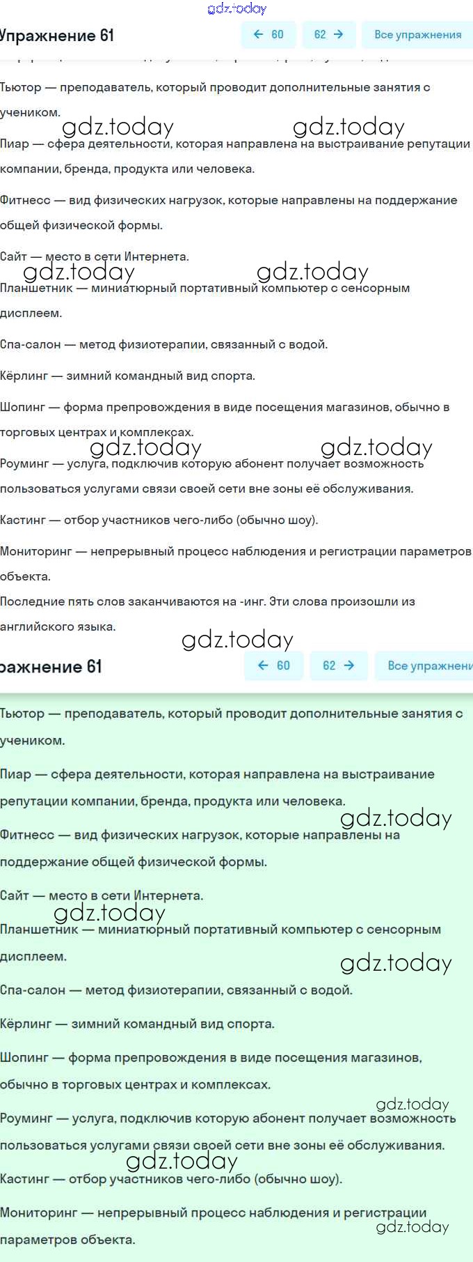 На страницах сайта gdz.today вы найдете учебный и вспомогательный материал, направленный на улучшения знаний школьной программы. ГДЗ - онлайн мир знаний Решение. Упражнения 61 Рабочей тетради по Русскому языку для 6 класса Янченко, Латфуллина Просвещение 2022