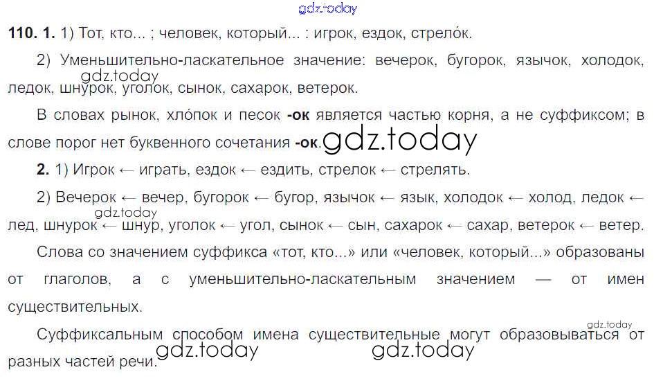 На страницах сайта gdz.today вы найдете учебный и вспомогательный материал, направленный на улучшения знаний школьной программы. ГДЗ - онлайн мир знаний Решение. Упражнения 110 Учебнику по Русскому языку для 6 класса Разумовская, Львова Дрофа, Просвещение Вертикаль 2016, 2022
