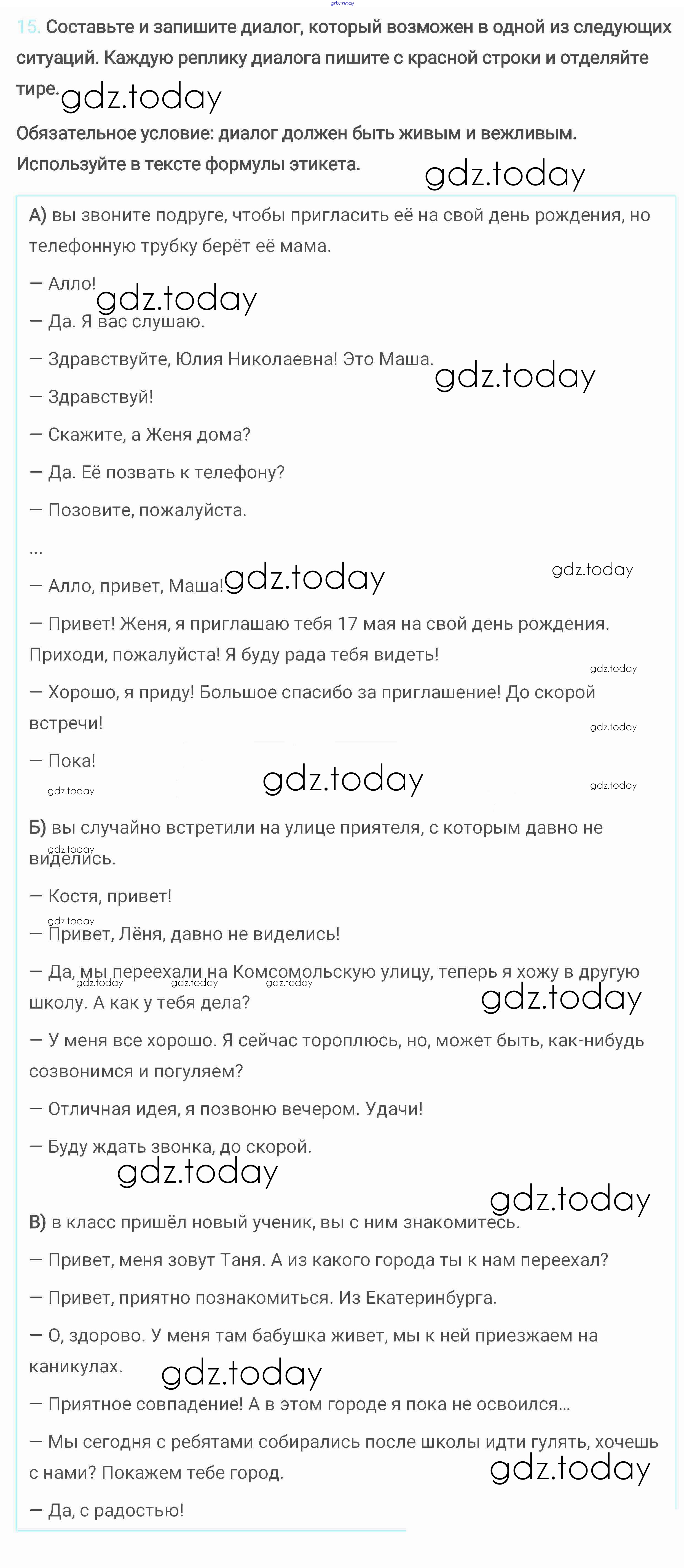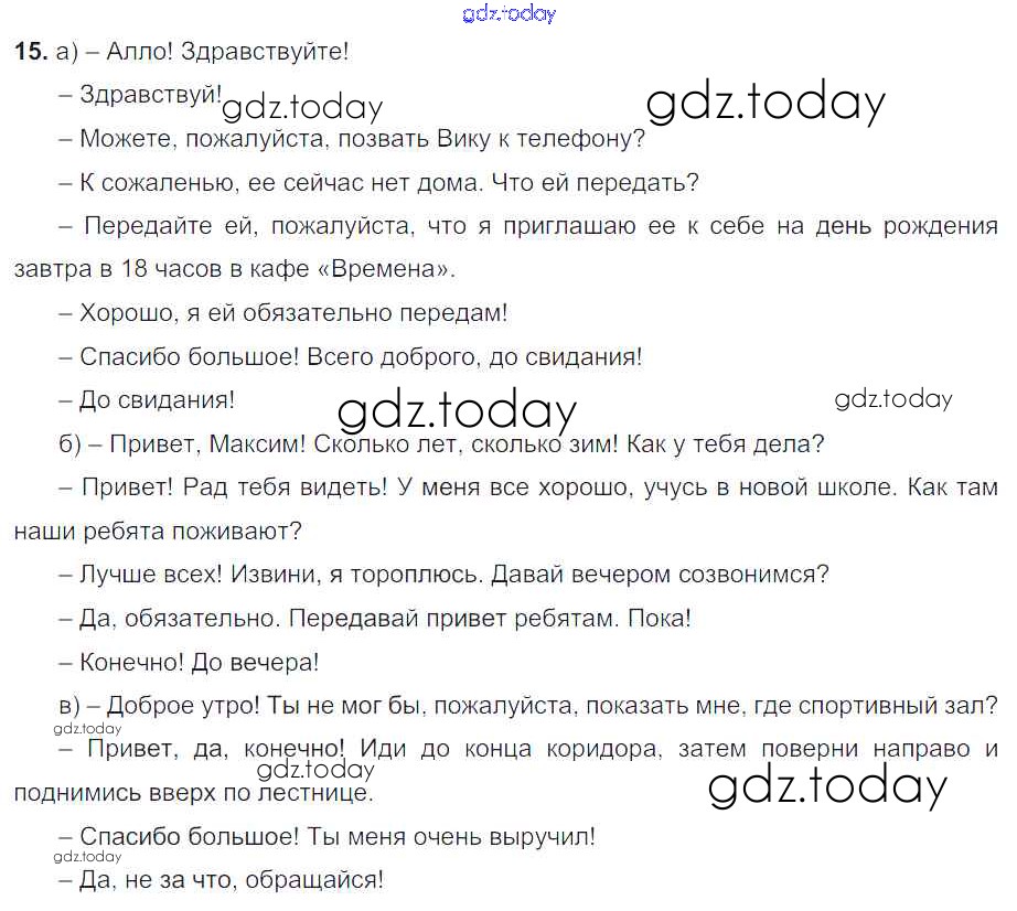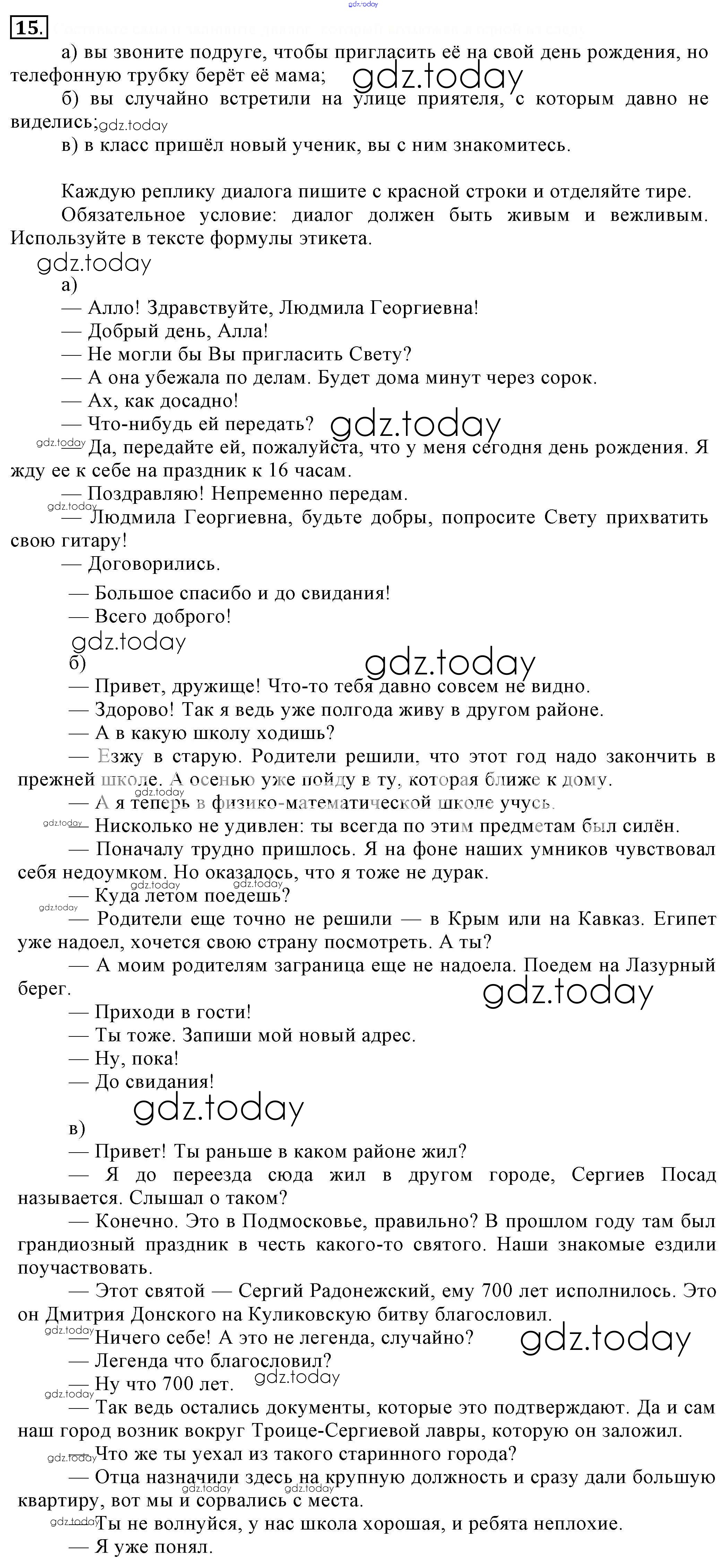 На страницах сайта gdz.today вы найдете учебный и вспомогательный материал, направленный на улучшения знаний школьной программы. ГДЗ - онлайн мир знаний Решение. Упражнения 15 Учебнику по Русскому языку для 6 класса Разумовская, Львова Дрофа, Просвещение Вертикаль 2016, 2022