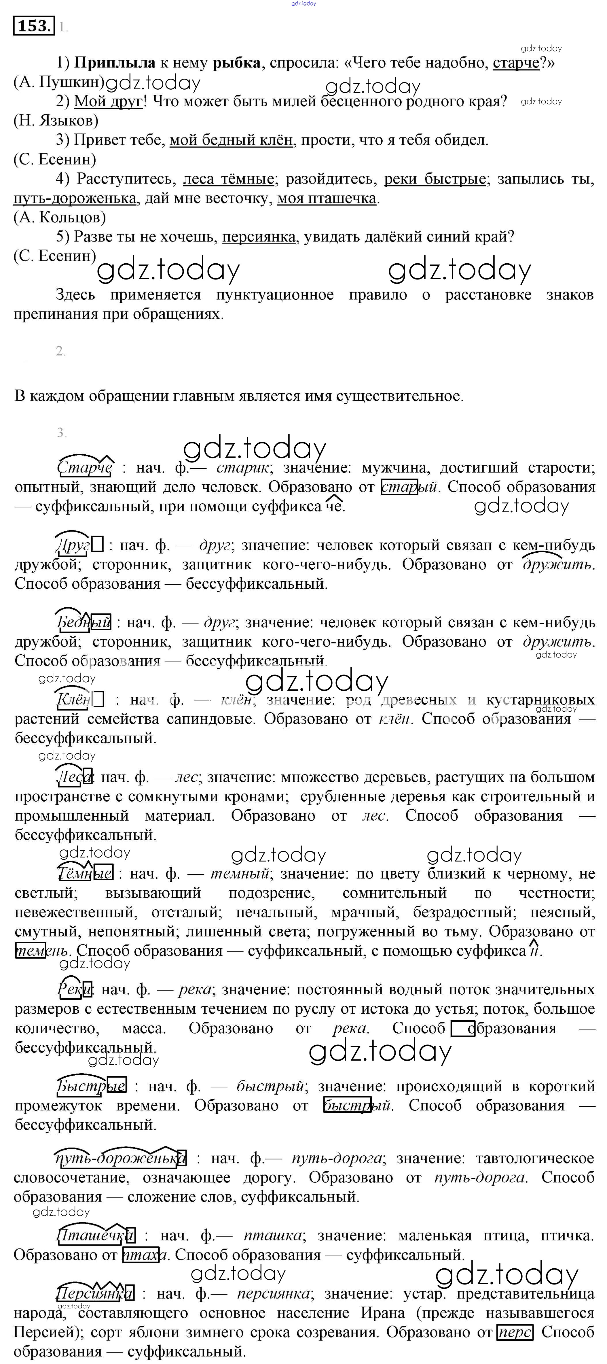 Ответы к Решение. Упражнения 153 Учебнику по Русскому языку для 6 класса Разумовская, Львова Дрофа, Просвещение Вертикаль 2016, 2022