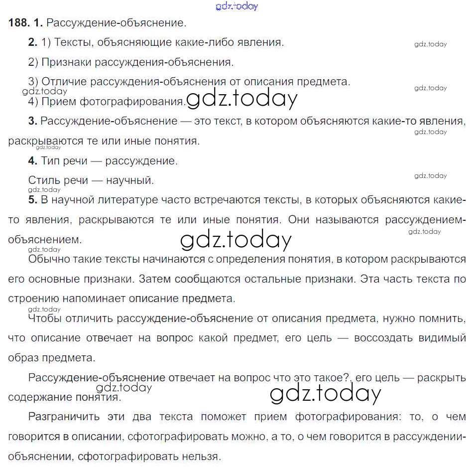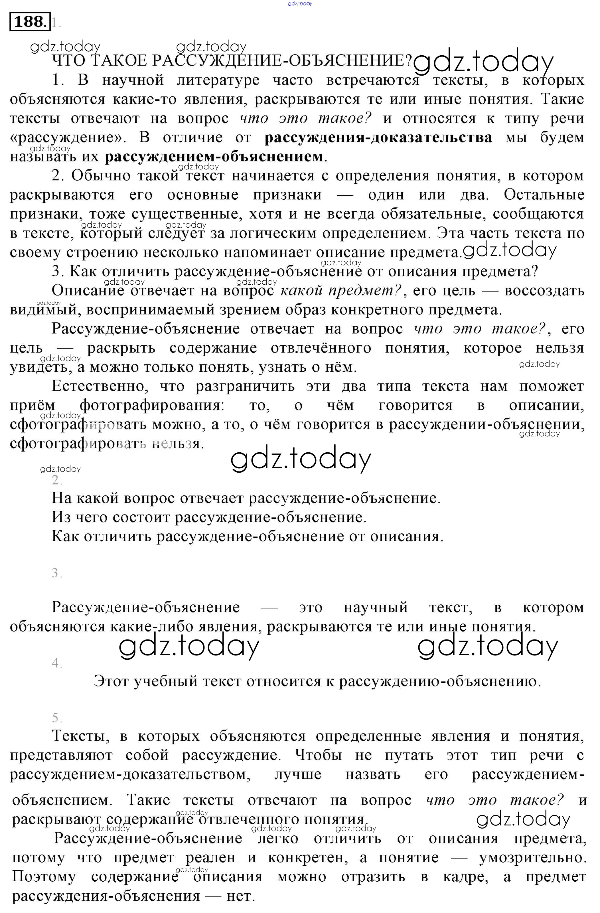 На страницах сайта gdz.today вы найдете учебный и вспомогательный материал, направленный на улучшения знаний школьной программы. ГДЗ - онлайн мир знаний Решение. Упражнения 188 Учебнику по Русскому языку для 6 класса Разумовская, Львова Дрофа, Просвещение Вертикаль 2016, 2022