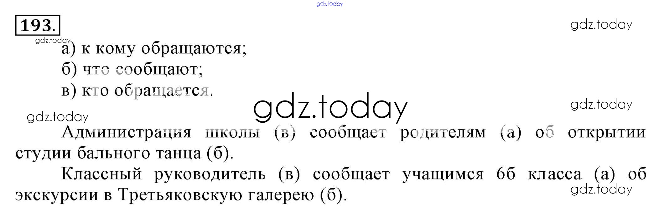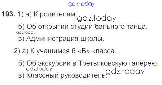 На страницах сайта gdz.today вы найдете учебный и вспомогательный материал, направленный на улучшения знаний школьной программы. ГДЗ - онлайн мир знаний Решение. Упражнения 193 Учебнику по Русскому языку для 6 класса Разумовская, Львова Дрофа, Просвещение Вертикаль 2016, 2022