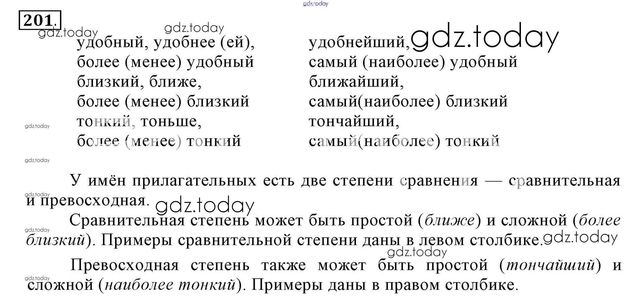 На страницах сайта gdz.today вы найдете учебный и вспомогательный материал, направленный на улучшения знаний школьной программы. ГДЗ - онлайн мир знаний Решение. Упражнения 201 Учебнику по Русскому языку для 6 класса Разумовская, Львова Дрофа, Просвещение Вертикаль 2016, 2022