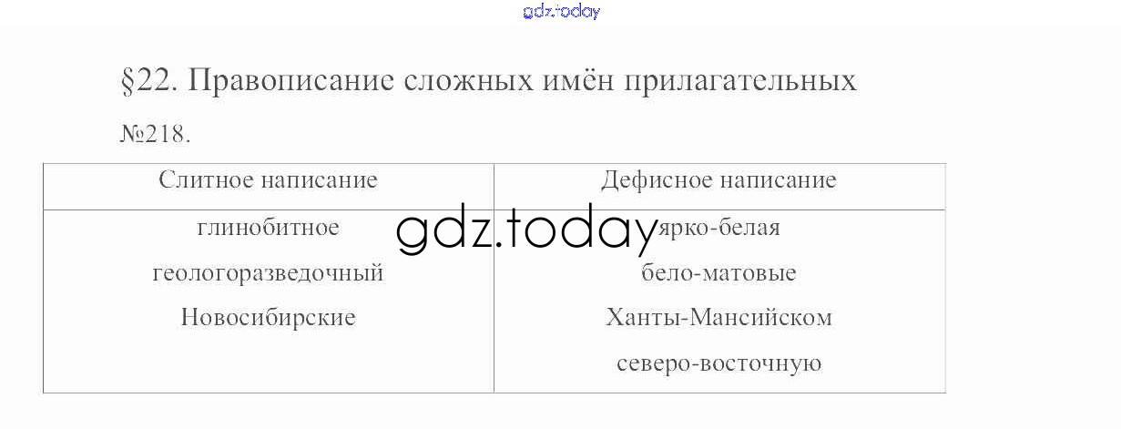 На страницах сайта gdz.today вы найдете учебный и вспомогательный материал, направленный на улучшения знаний школьной программы. ГДЗ - онлайн мир знаний Решение. Упражнения 218 Учебнику по Русскому языку для 6 класса Разумовская, Львова Дрофа, Просвещение Вертикаль 2016, 2022