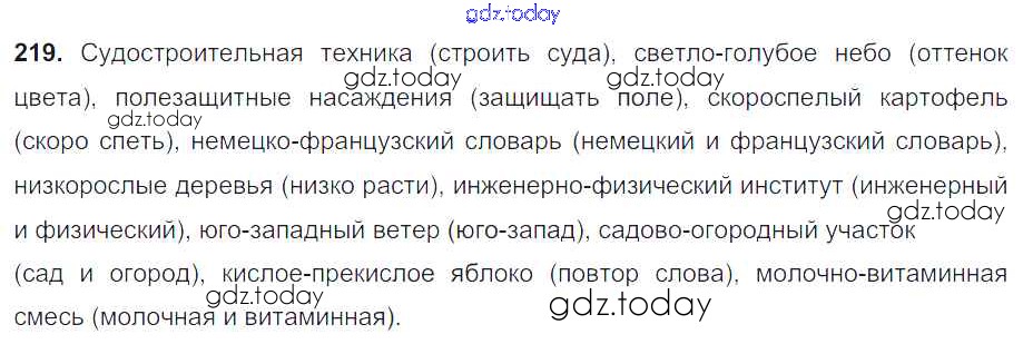 На страницах сайта gdz.today вы найдете учебный и вспомогательный материал, направленный на улучшения знаний школьной программы. ГДЗ - онлайн мир знаний Решение. Упражнения 219 Учебнику по Русскому языку для 6 класса Разумовская, Львова Дрофа, Просвещение Вертикаль 2016, 2022