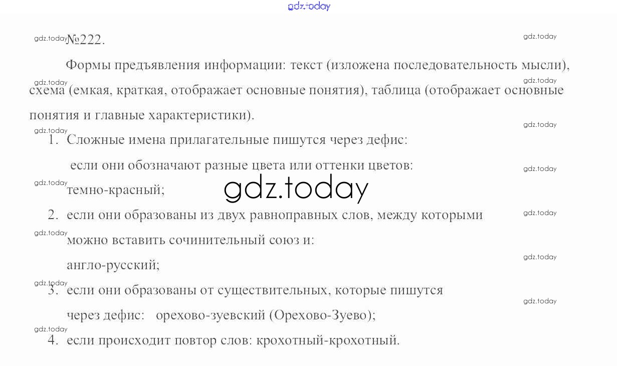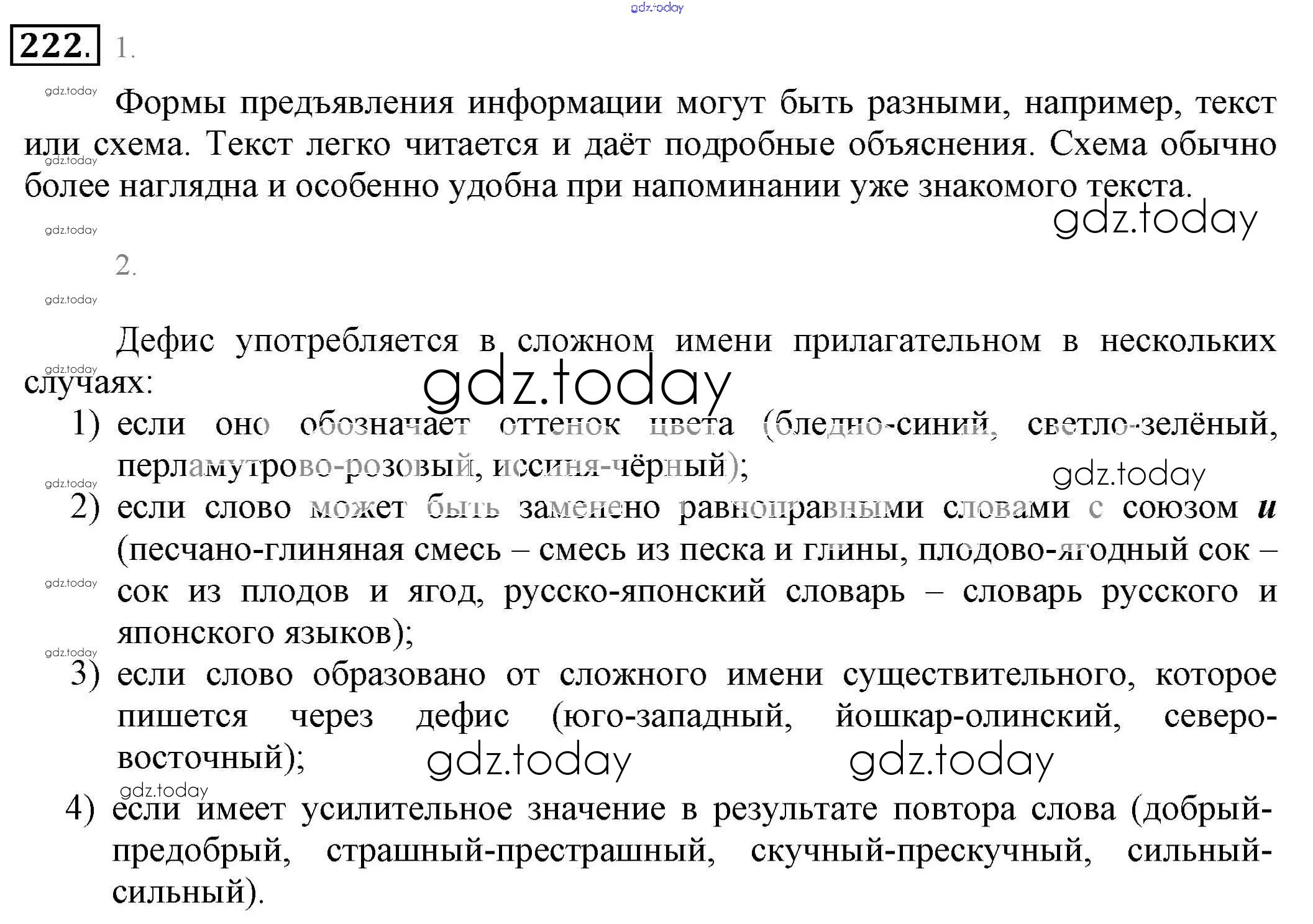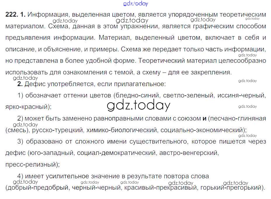 На страницах сайта gdz.today вы найдете учебный и вспомогательный материал, направленный на улучшения знаний школьной программы. ГДЗ - онлайн мир знаний Решение. Упражнения 222 Учебнику по Русскому языку для 6 класса Разумовская, Львова Дрофа, Просвещение Вертикаль 2016, 2022