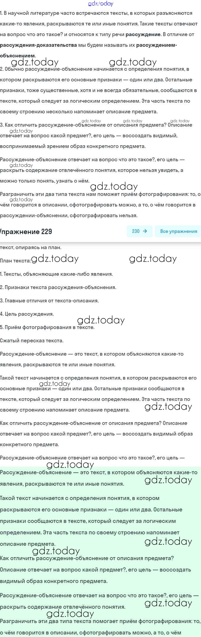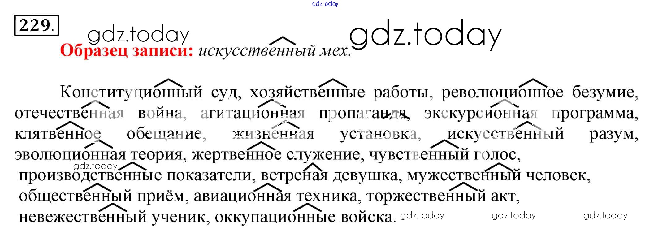 На страницах сайта gdz.today вы найдете учебный и вспомогательный материал, направленный на улучшения знаний школьной программы. ГДЗ - онлайн мир знаний Решение. Упражнения 229 Учебнику по Русскому языку для 6 класса Разумовская, Львова Дрофа, Просвещение Вертикаль 2016, 2022