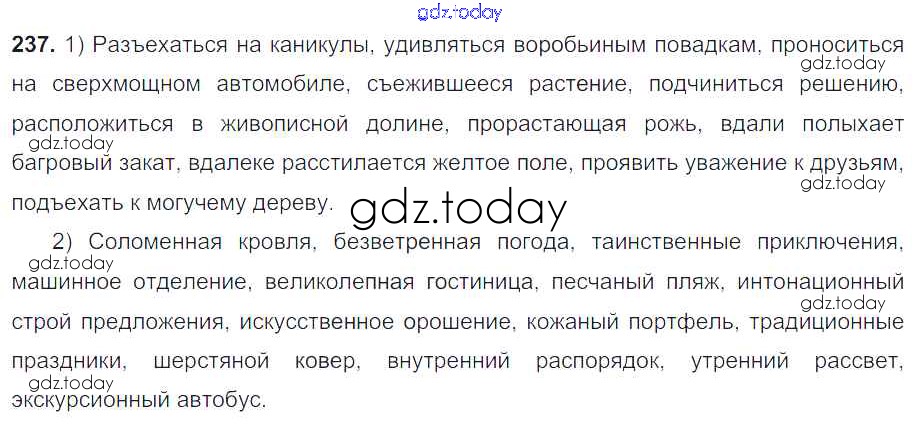 На страницах сайта gdz.today вы найдете учебный и вспомогательный материал, направленный на улучшения знаний школьной программы. ГДЗ - онлайн мир знаний Решение. Упражнения 237 Учебнику по Русскому языку для 6 класса Разумовская, Львова Дрофа, Просвещение Вертикаль 2016, 2022