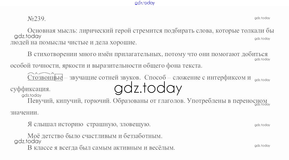 На страницах сайта gdz.today вы найдете учебный и вспомогательный материал, направленный на улучшения знаний школьной программы. ГДЗ - онлайн мир знаний Решение. Упражнения 239 Учебнику по Русскому языку для 6 класса Разумовская, Львова Дрофа, Просвещение Вертикаль 2016, 2022