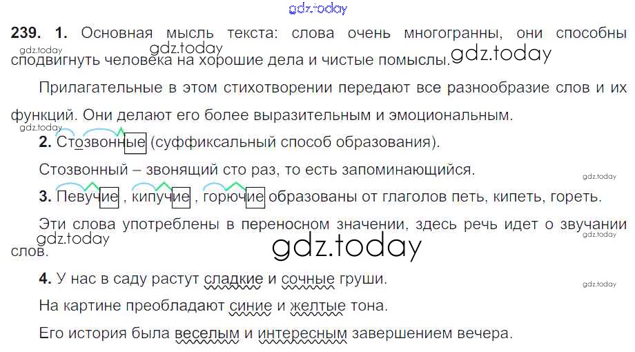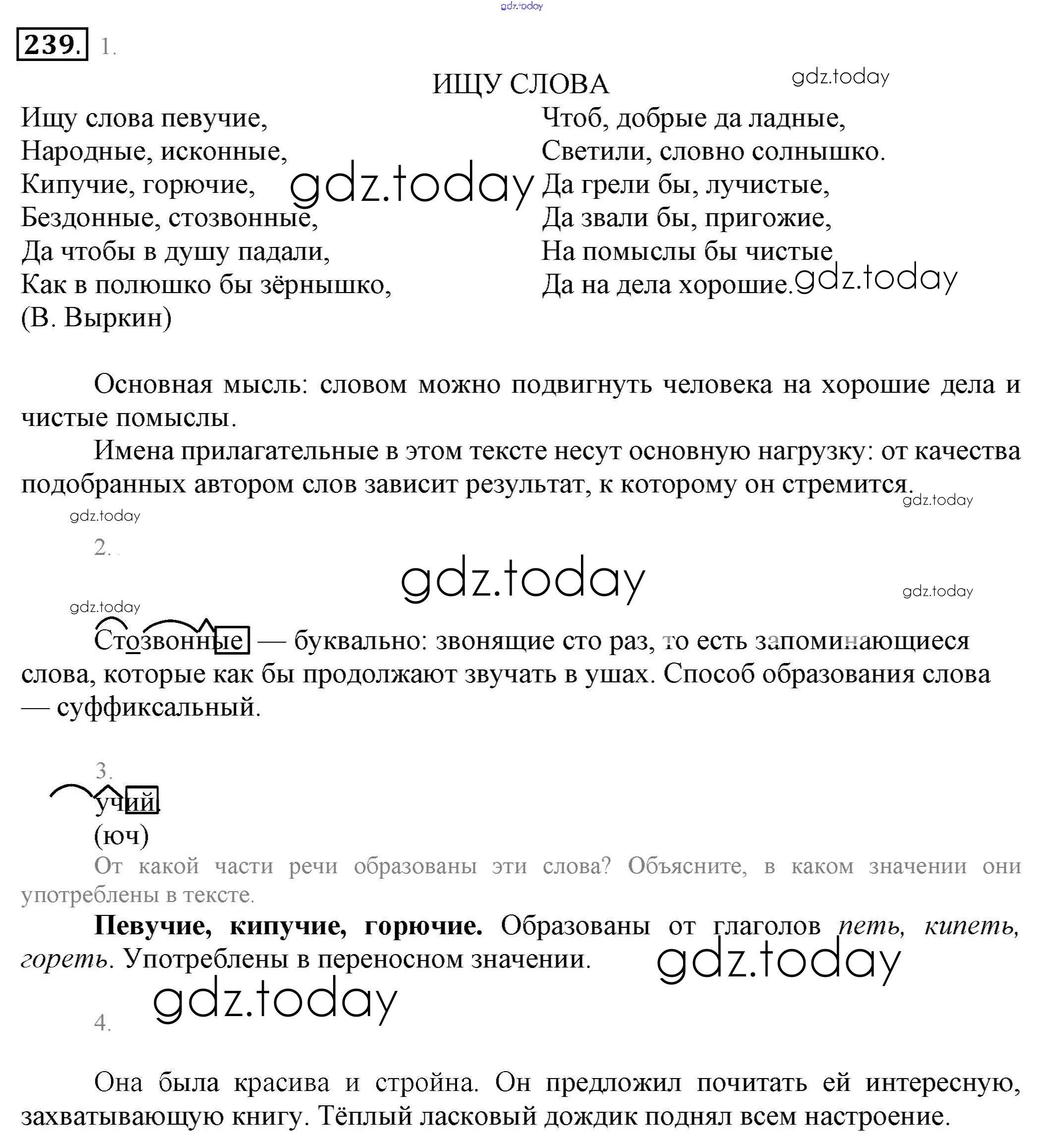 Ответы к Решение. Упражнения 239 Учебнику по Русскому языку для 6 класса Разумовская, Львова Дрофа, Просвещение Вертикаль 2016, 2022