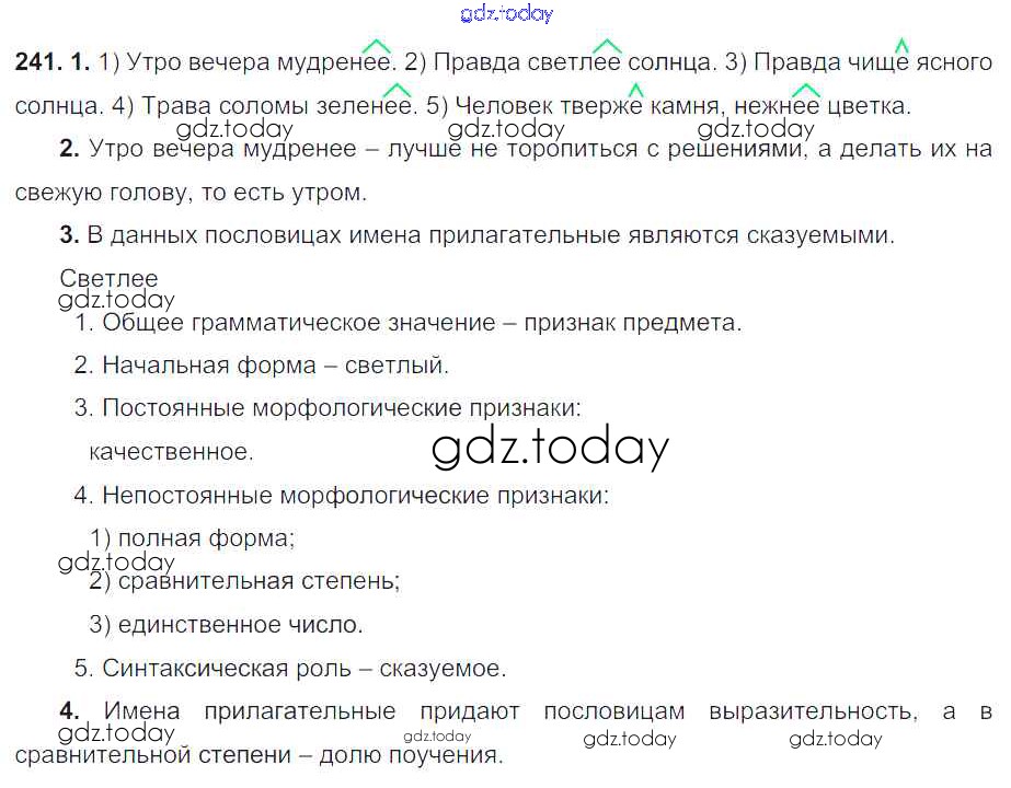 На страницах сайта gdz.today вы найдете учебный и вспомогательный материал, направленный на улучшения знаний школьной программы. ГДЗ - онлайн мир знаний Решение. Упражнения 241 Учебнику по Русскому языку для 6 класса Разумовская, Львова Дрофа, Просвещение Вертикаль 2016, 2022