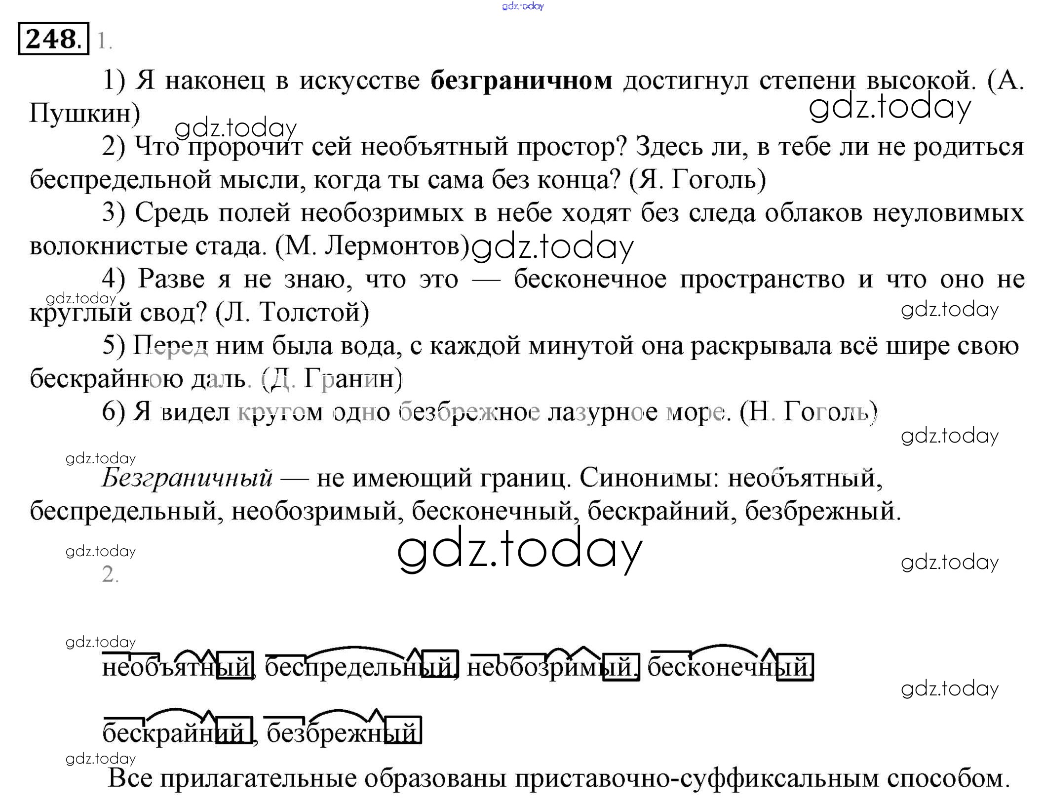 На страницах сайта gdz.today вы найдете учебный и вспомогательный материал, направленный на улучшения знаний школьной программы. ГДЗ - онлайн мир знаний Решение. Упражнения 248 Учебнику по Русскому языку для 6 класса Разумовская, Львова Дрофа, Просвещение Вертикаль 2016, 2022