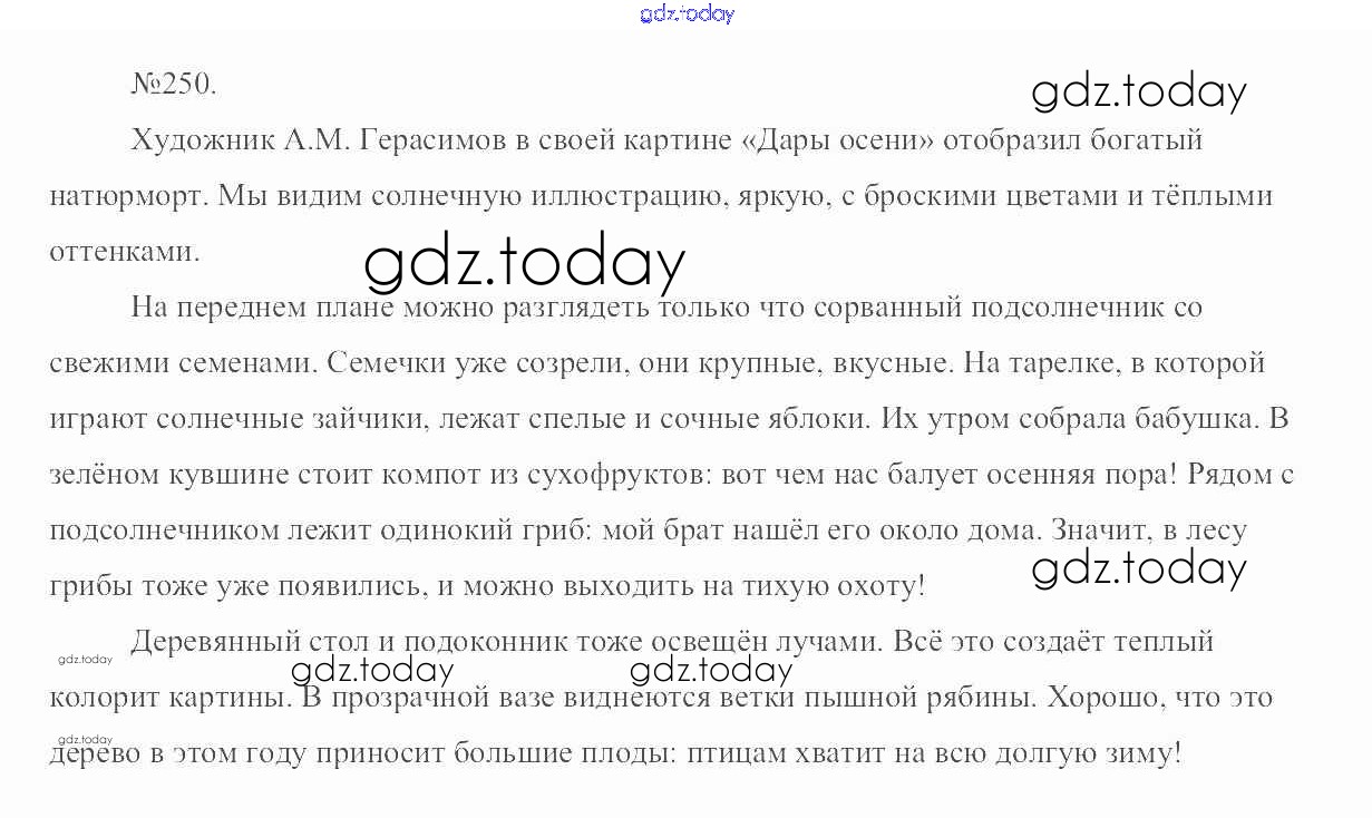На страницах сайта gdz.today вы найдете учебный и вспомогательный материал, направленный на улучшения знаний школьной программы. ГДЗ - онлайн мир знаний Решение. Упражнения 250 Учебнику по Русскому языку для 6 класса Разумовская, Львова Дрофа, Просвещение Вертикаль 2016, 2022