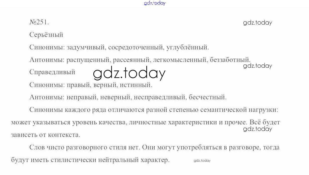 На страницах сайта gdz.today вы найдете учебный и вспомогательный материал, направленный на улучшения знаний школьной программы. ГДЗ - онлайн мир знаний Решение. Упражнения 251 Учебнику по Русскому языку для 6 класса Разумовская, Львова Дрофа, Просвещение Вертикаль 2016, 2022