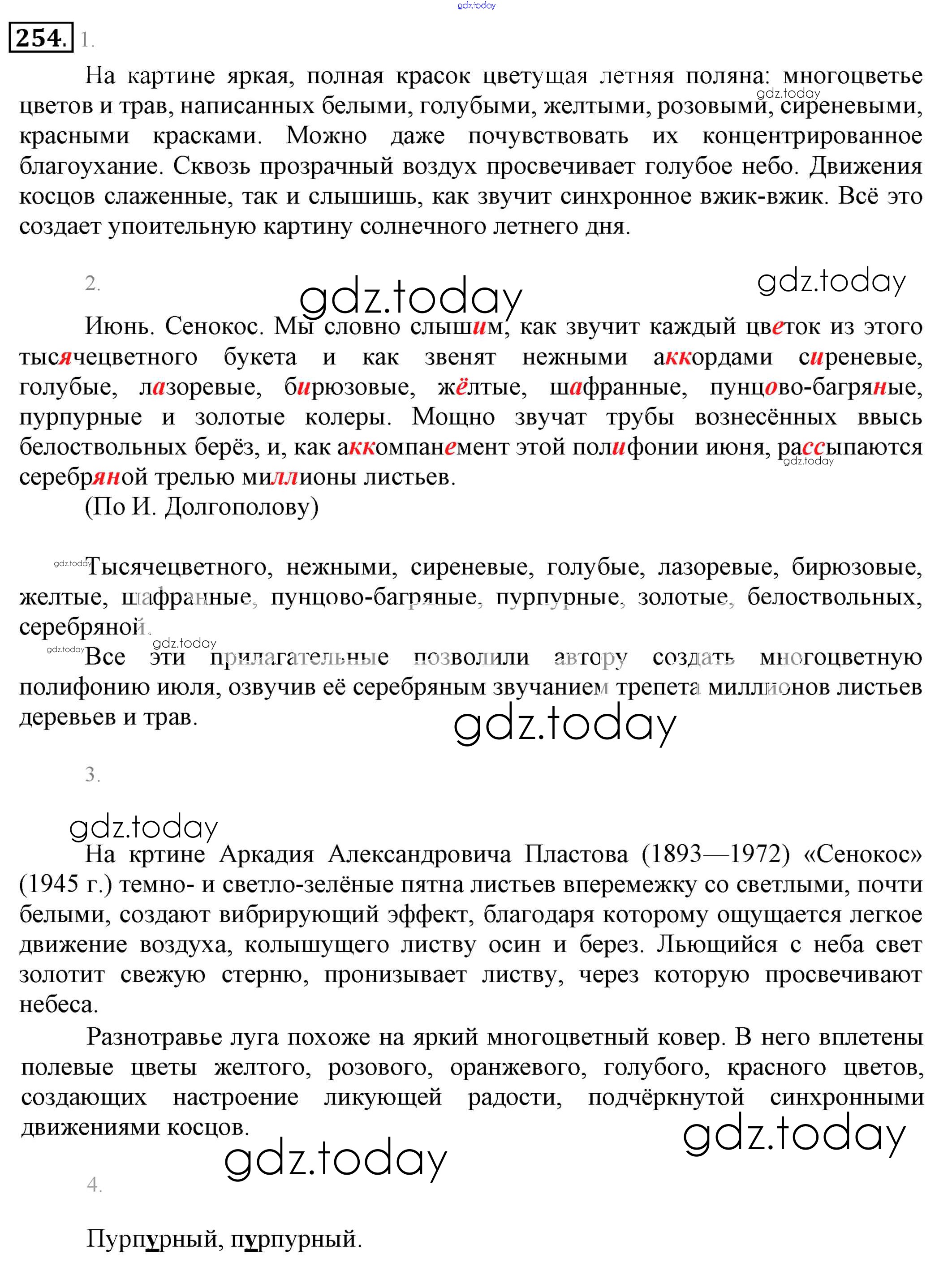 Ответы к Решение. Упражнения 254 Учебнику по Русскому языку для 6 класса Разумовская, Львова Дрофа, Просвещение Вертикаль 2016, 2022