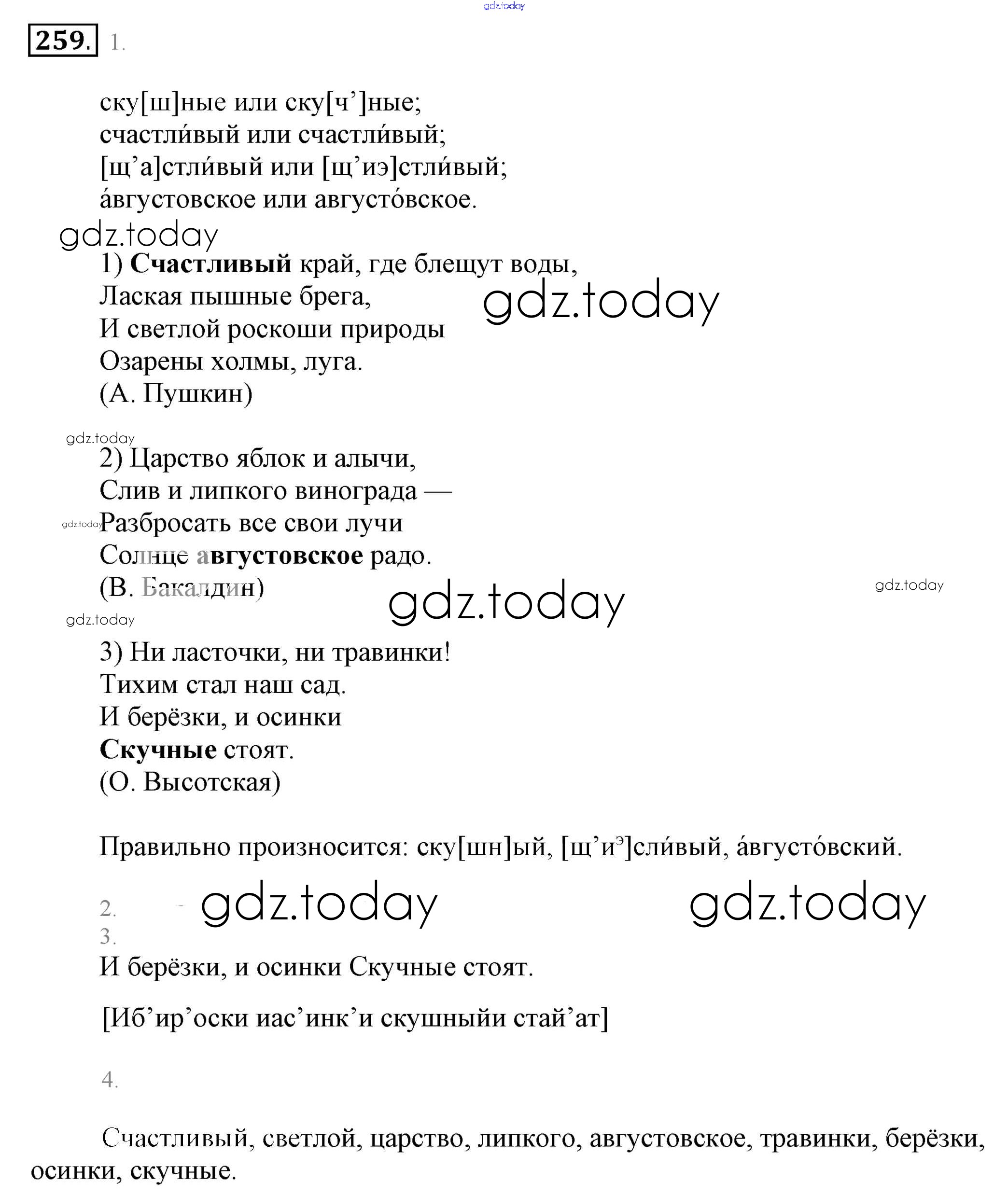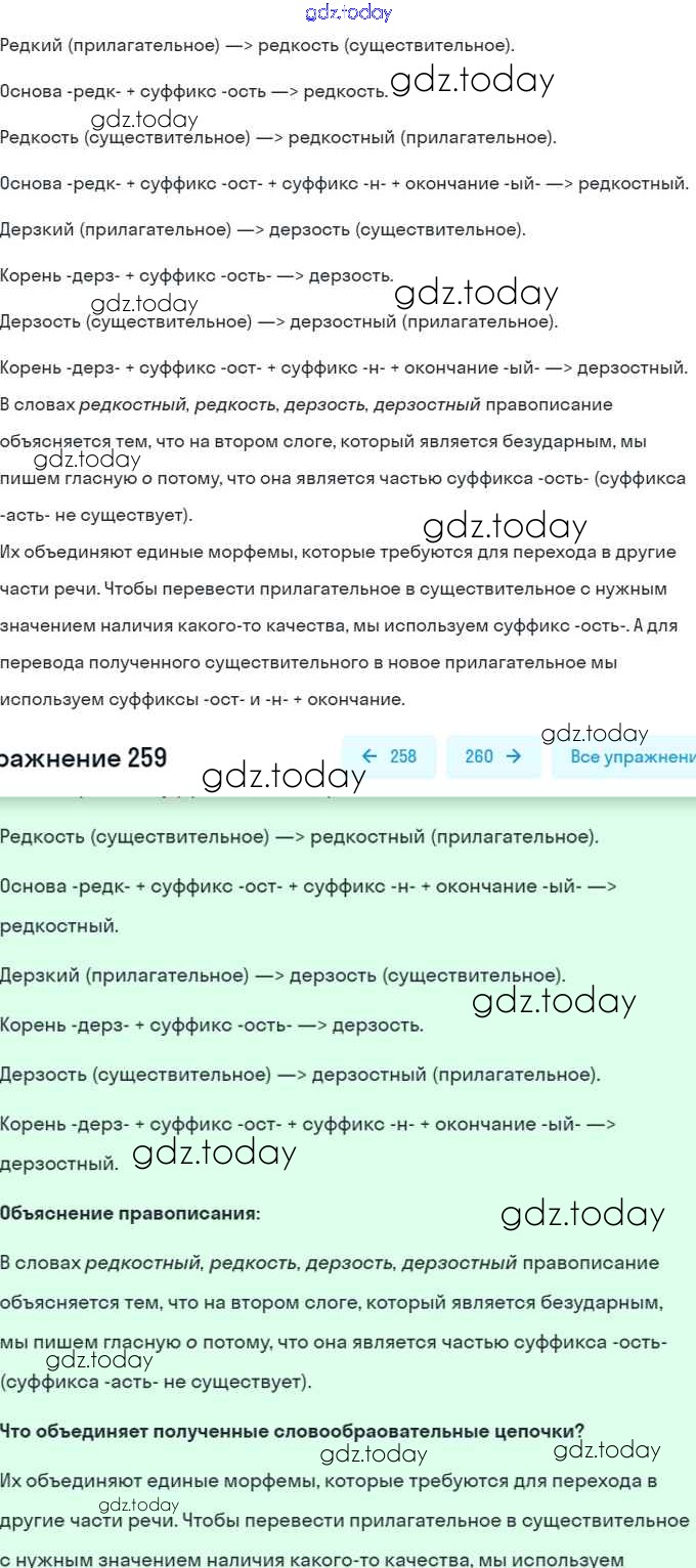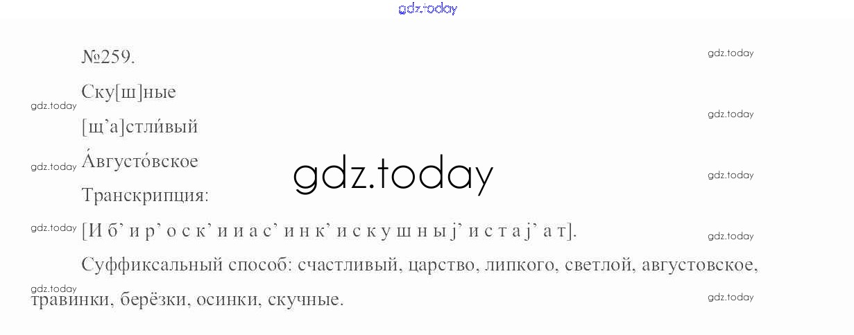 На страницах сайта gdz.today вы найдете учебный и вспомогательный материал, направленный на улучшения знаний школьной программы. ГДЗ - онлайн мир знаний Решение. Упражнения 259 Учебнику по Русскому языку для 6 класса Разумовская, Львова Дрофа, Просвещение Вертикаль 2016, 2022