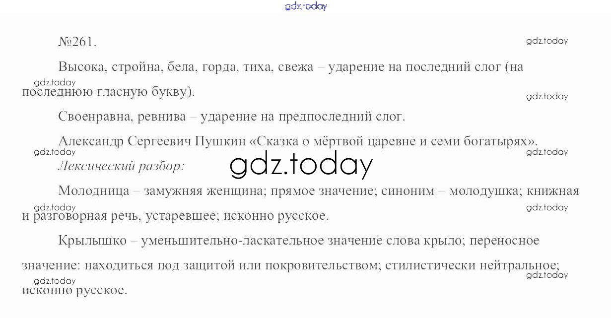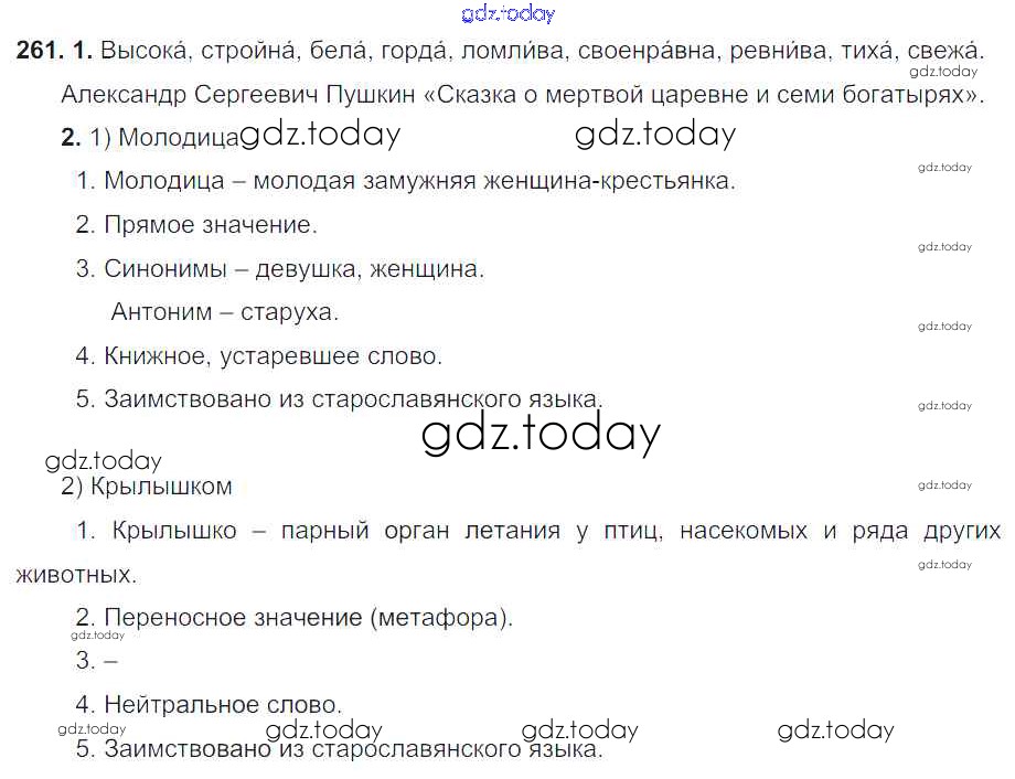 На страницах сайта gdz.today вы найдете учебный и вспомогательный материал, направленный на улучшения знаний школьной программы. ГДЗ - онлайн мир знаний Решение. Упражнения 261 Учебнику по Русскому языку для 6 класса Разумовская, Львова Дрофа, Просвещение Вертикаль 2016, 2022