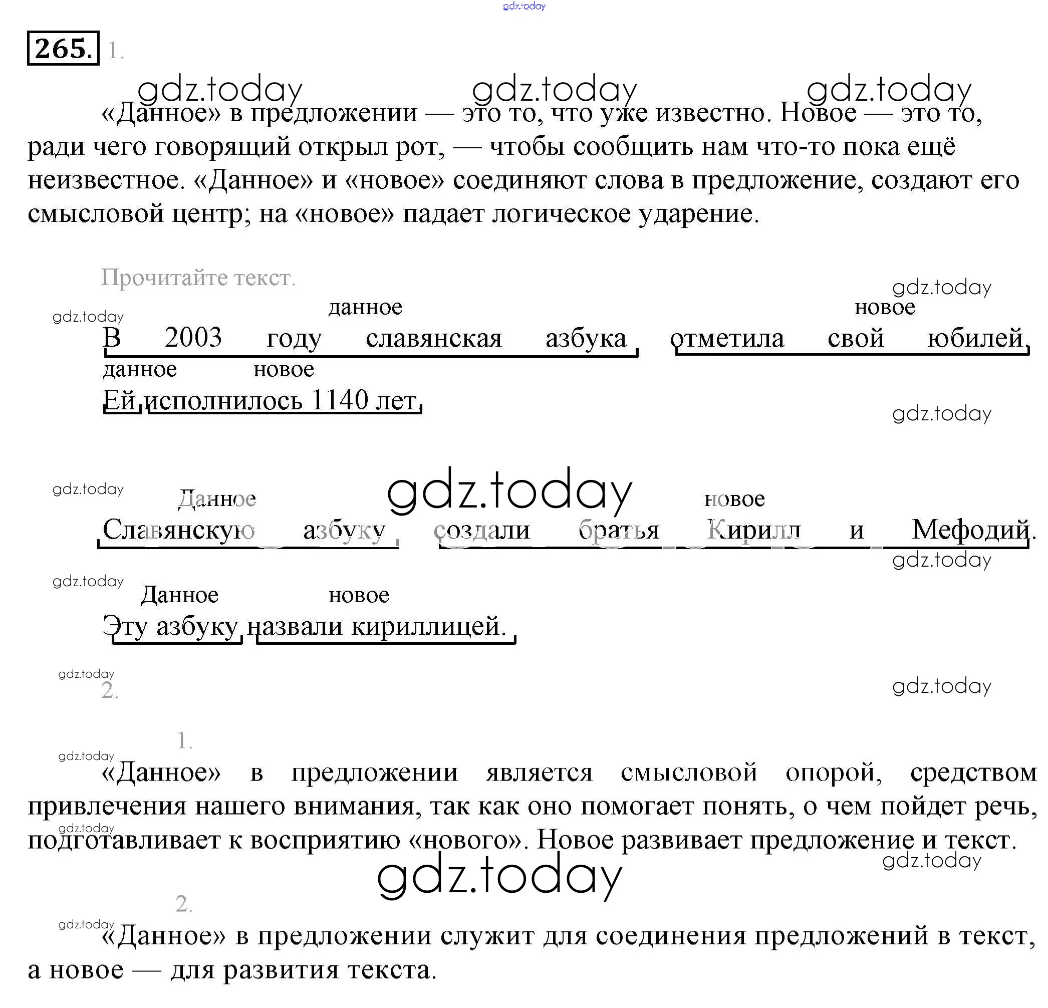 На страницах сайта gdz.today вы найдете учебный и вспомогательный материал, направленный на улучшения знаний школьной программы. ГДЗ - онлайн мир знаний Решение. Упражнения 265 Учебнику по Русскому языку для 6 класса Разумовская, Львова Дрофа, Просвещение Вертикаль 2016, 2022