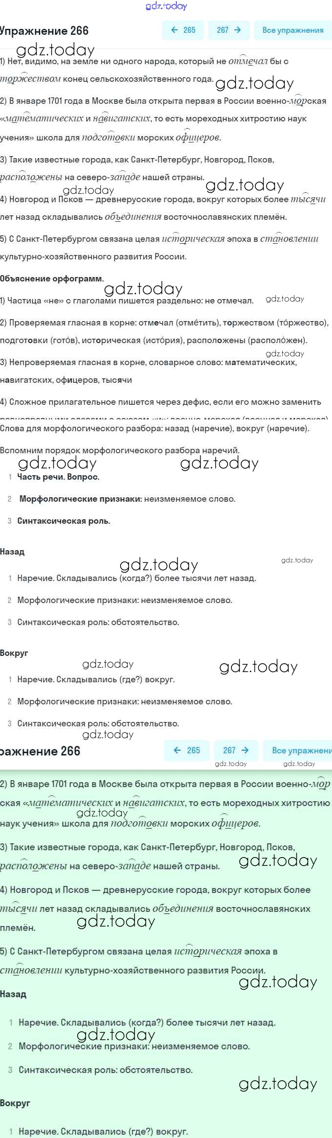 На страницах сайта gdz.today вы найдете учебный и вспомогательный материал, направленный на улучшения знаний школьной программы. ГДЗ - онлайн мир знаний Решение. Упражнения 266 Учебнику по Русскому языку для 6 класса Разумовская, Львова Дрофа, Просвещение Вертикаль 2016, 2022