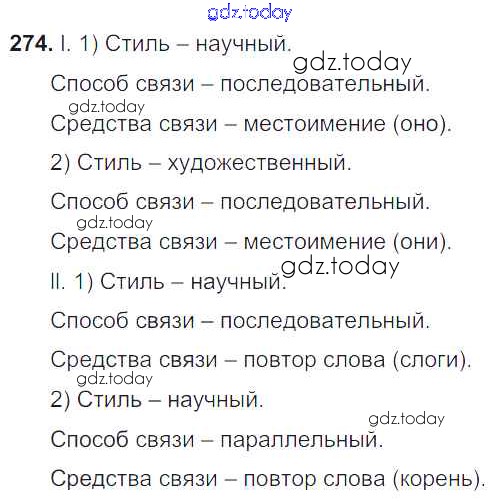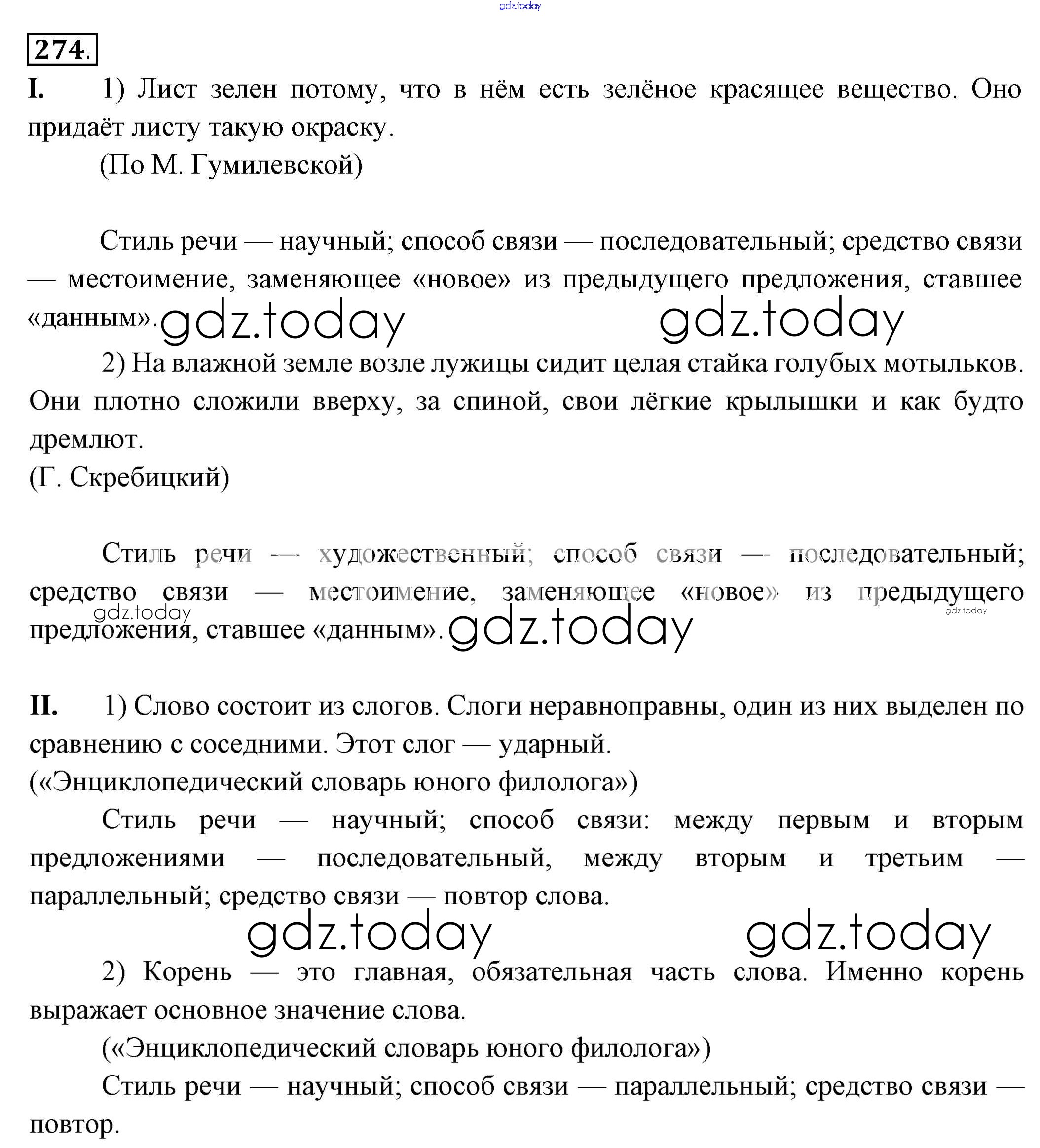 Ответы к Решение. Упражнения 274 Учебнику по Русскому языку для 6 класса Разумовская, Львова Дрофа, Просвещение Вертикаль 2016, 2022