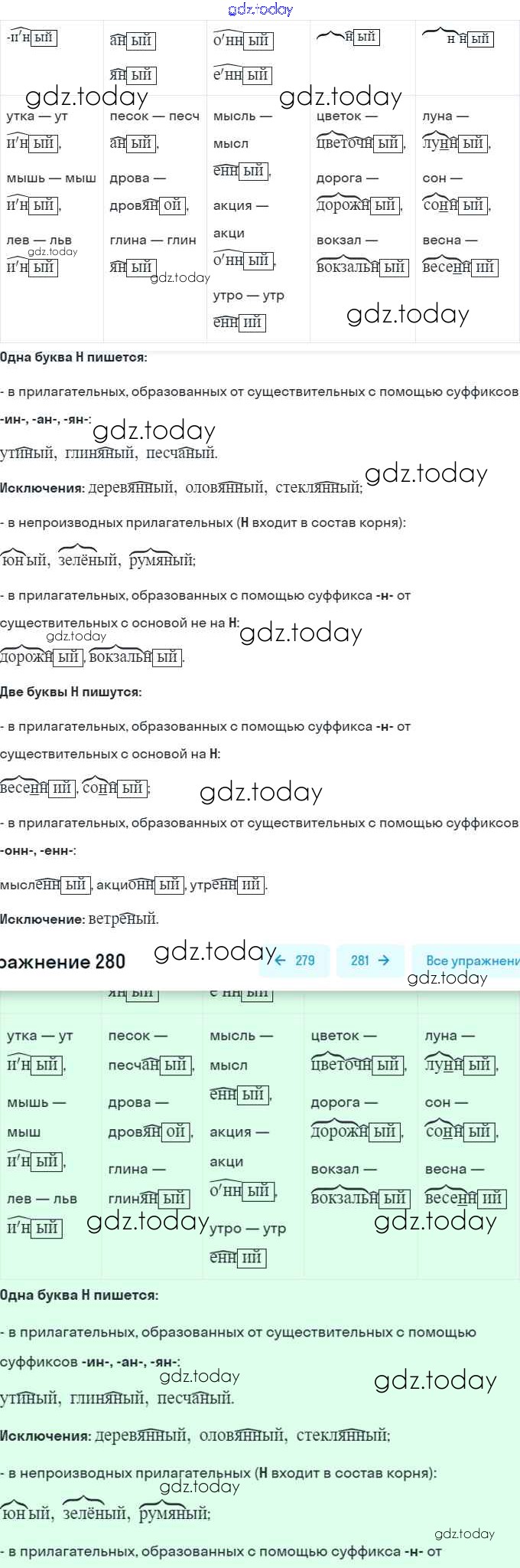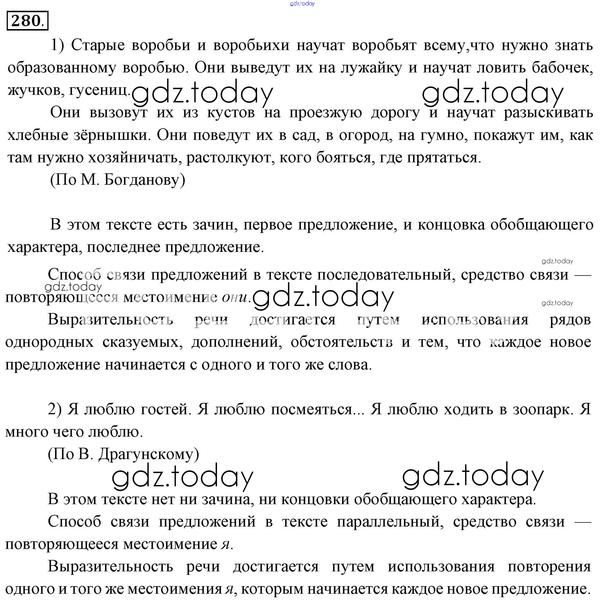 На страницах сайта gdz.today вы найдете учебный и вспомогательный материал, направленный на улучшения знаний школьной программы. ГДЗ - онлайн мир знаний Решение. Упражнения 280 Учебнику по Русскому языку для 6 класса Разумовская, Львова Дрофа, Просвещение Вертикаль 2016, 2022