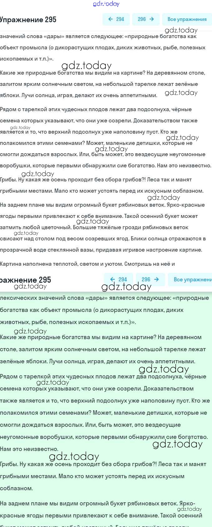 На страницах сайта gdz.today вы найдете учебный и вспомогательный материал, направленный на улучшения знаний школьной программы. ГДЗ - онлайн мир знаний Решение. Упражнения 295 Учебнику по Русскому языку для 6 класса Разумовская, Львова Дрофа, Просвещение Вертикаль 2016, 2022
