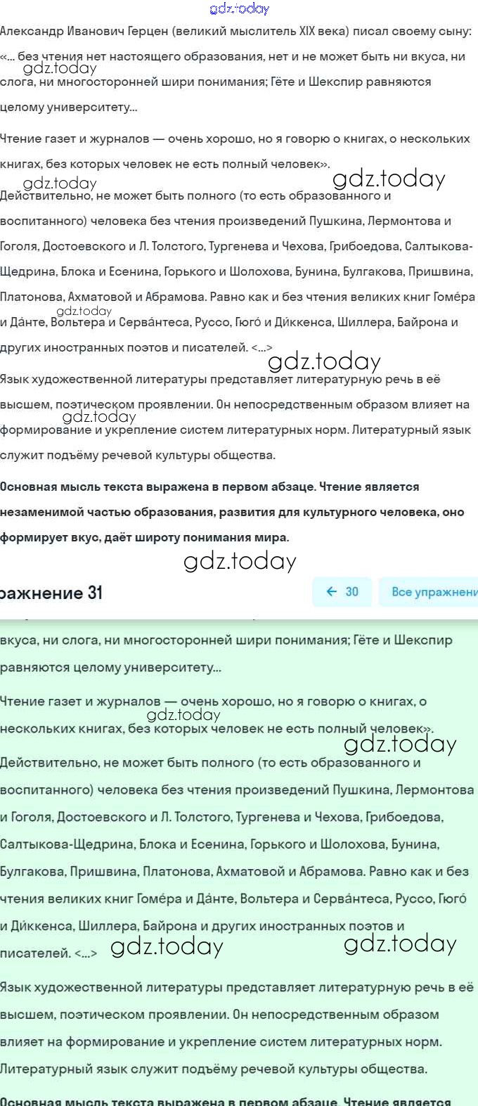 На страницах сайта gdz.today вы найдете учебный и вспомогательный материал, направленный на улучшения знаний школьной программы. ГДЗ - онлайн мир знаний Решение. Упражнения 31 Учебнику по Русскому языку для 6 класса Разумовская, Львова Дрофа, Просвещение Вертикаль 2016, 2022