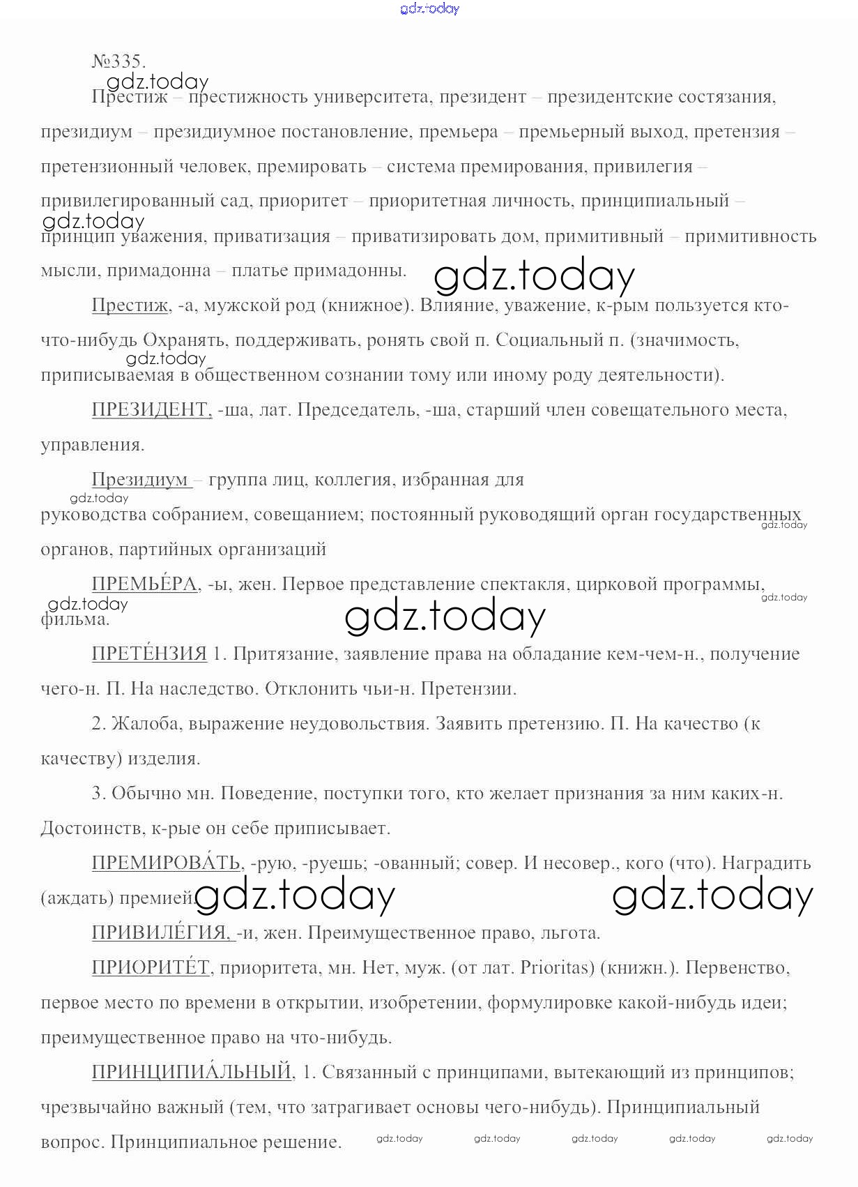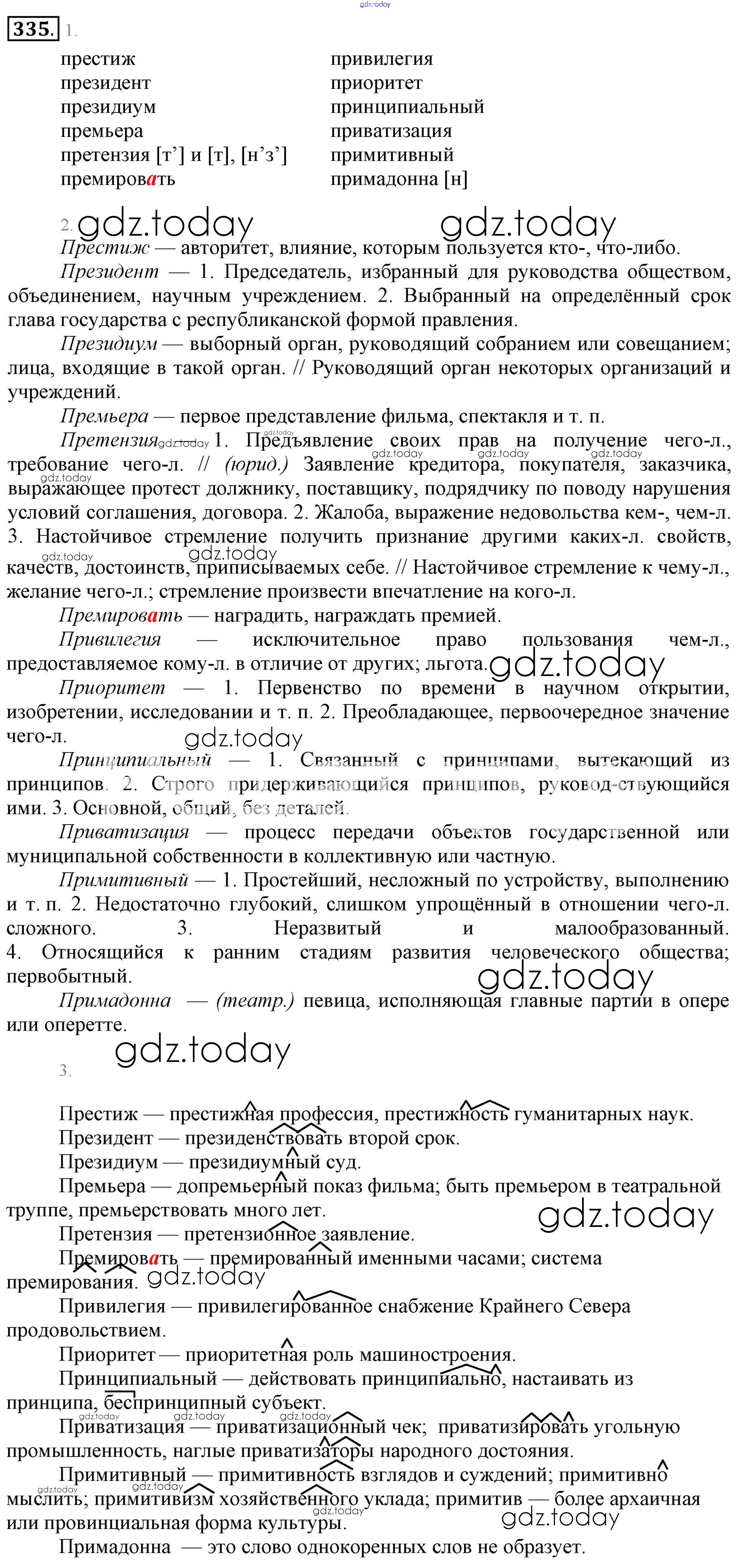 Ответы к Решение. Упражнения 335 Учебнику по Русскому языку для 6 класса Разумовская, Львова Дрофа, Просвещение Вертикаль 2016, 2022