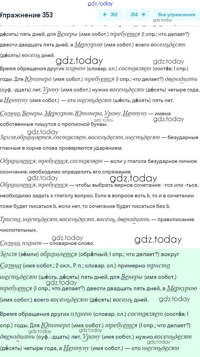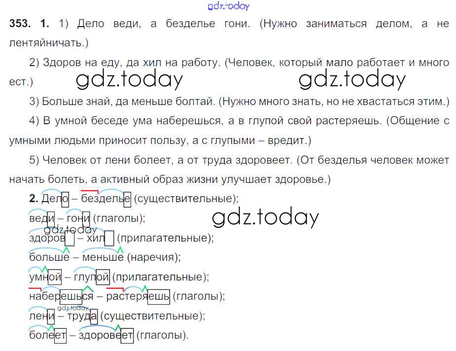 На страницах сайта gdz.today вы найдете учебный и вспомогательный материал, направленный на улучшения знаний школьной программы. ГДЗ - онлайн мир знаний Решение. Упражнения 353 Учебнику по Русскому языку для 6 класса Разумовская, Львова Дрофа, Просвещение Вертикаль 2016, 2022
