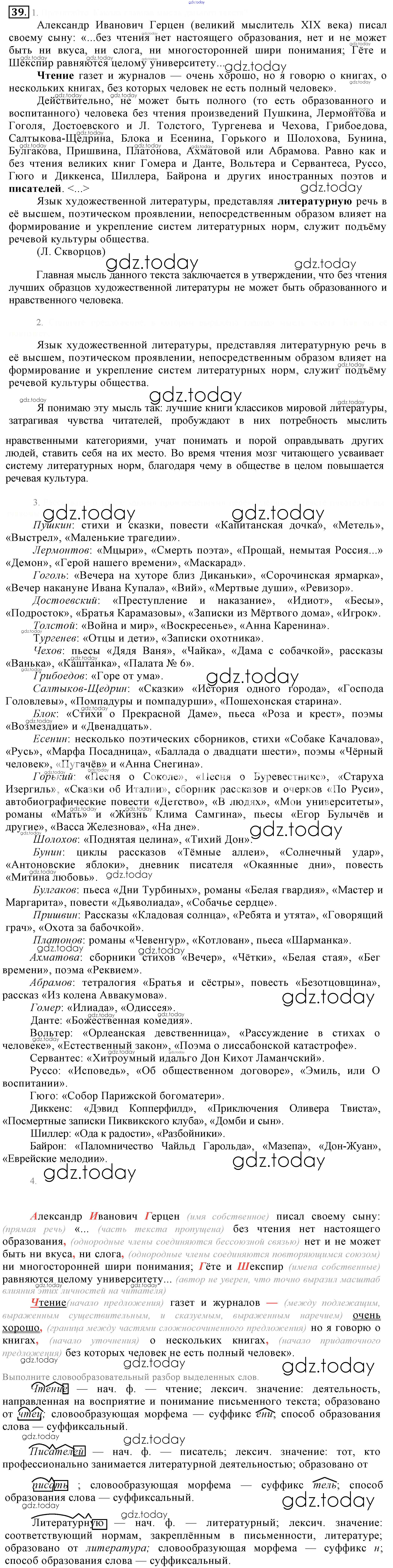 На страницах сайта gdz.today вы найдете учебный и вспомогательный материал, направленный на улучшения знаний школьной программы. ГДЗ - онлайн мир знаний Решение. Упражнения 39 Учебнику по Русскому языку для 6 класса Разумовская, Львова Дрофа, Просвещение Вертикаль 2016, 2022