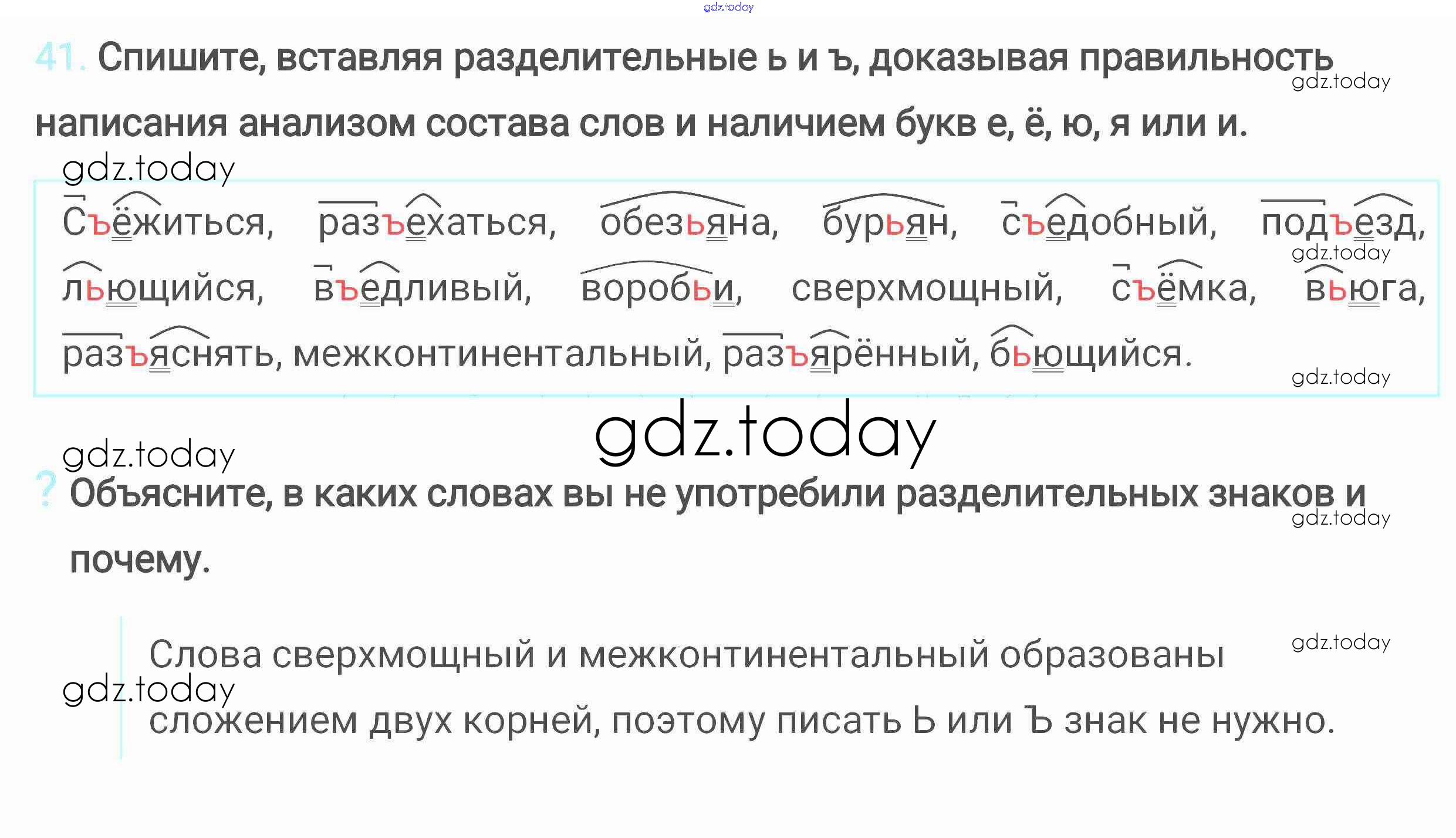 На страницах сайта gdz.today вы найдете учебный и вспомогательный материал, направленный на улучшения знаний школьной программы. ГДЗ - онлайн мир знаний Решение. Упражнения 41 Учебнику по Русскому языку для 6 класса Разумовская, Львова Дрофа, Просвещение Вертикаль 2016, 2022